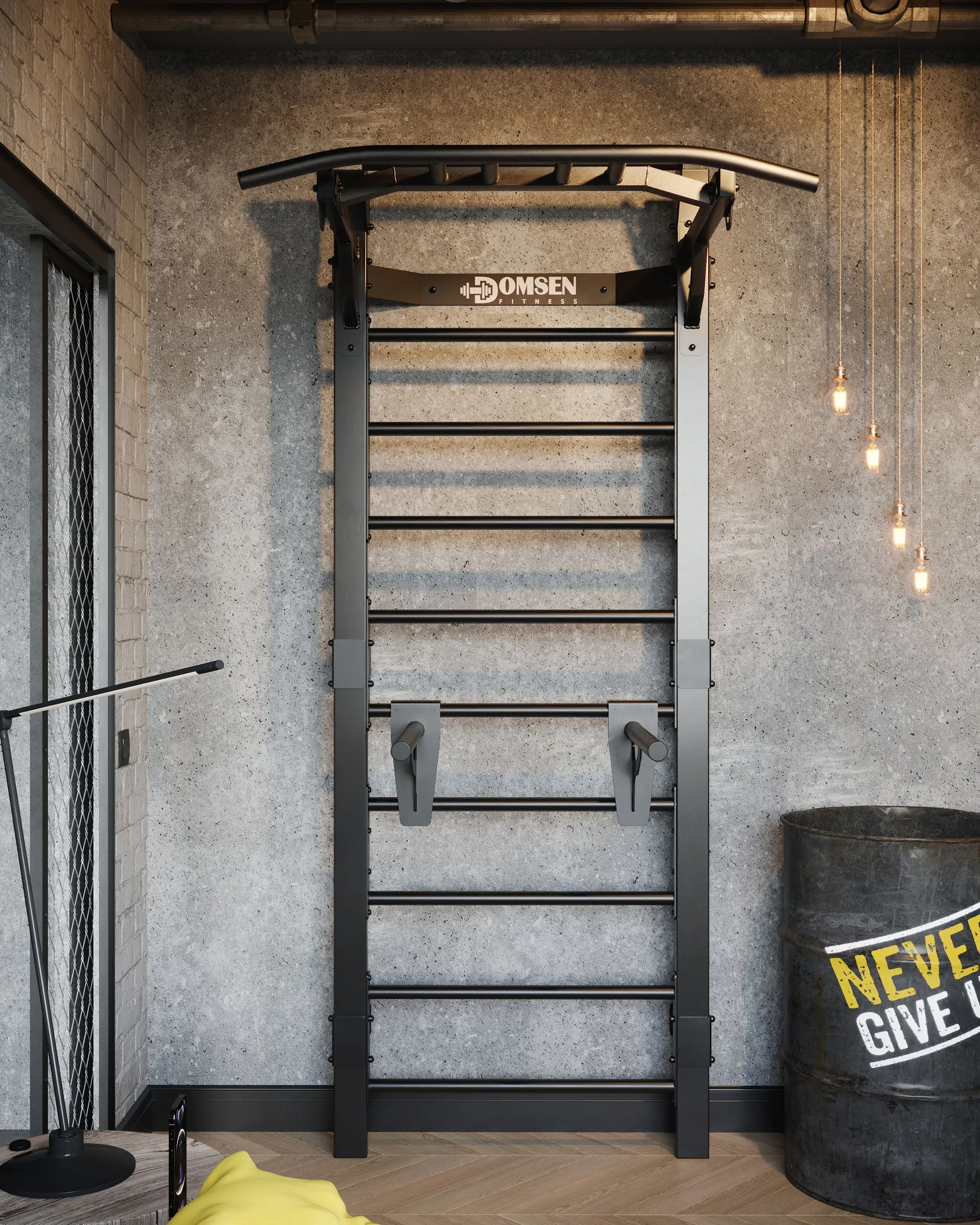 За счёт мощного профиля боковых стоек 80/40 мм толщиной не менее 2 мм и горизонтальных поручней диаметром 33мм шведская стенка Domsen Ds46 способна выдерживать сверх высокие и интенсивные нагрузки.