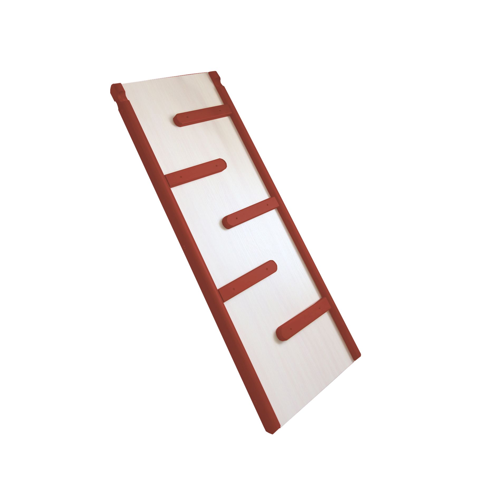 Универсальная модель с двумя сторонами имеет с одной стороный гладкую поверхность, а с другой несколько деревяных зацепов. Малышам очень нравится - лазить по скалолазу и скатываться с мини-горки. Скат-скалолаз подходит для детей в возрасте от 7 месяцев до 4 лет, устанавливается на ступени шведской стенки и выдерживает максимальную нагрузку до 50 кг.