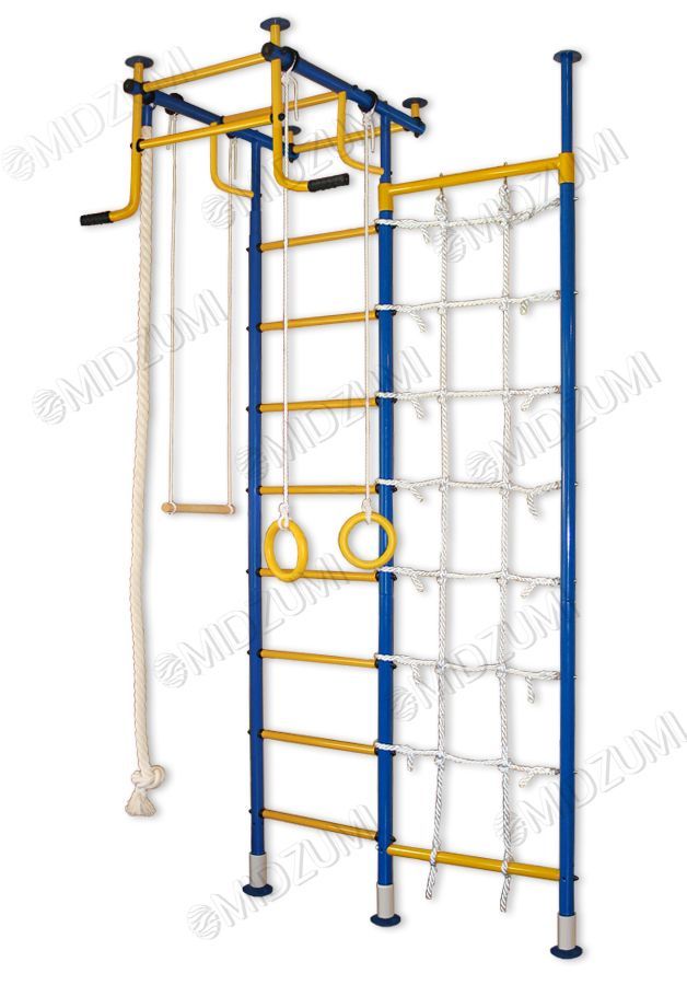 Торговый Дом Midzumi представляет новинку Детский спортивный комплекс Midzumi Kawa . Этот спортивный комплекс показывает разнообразие модельного ряда продукции Midzumi. Прочная металлическая конструкция позволяет выдерживать до 100 кг. Крепление враспор прекрасно подойдет тем, кто не хочет портить обои и сверлить стены. Крепление враспор между полом и потолком надежно ни чуть не меньше крепления к стене, к тому же такой комплекс при необходимости можно легко перенести на другое место. При выборе комплекса обратите внимание на материал Вашего потолка. Если он выполнен из хрупких материалов, таких как гипсокартон (навесные потолки) и вагонка, то для Вас лучше подойдут пристенные модели. Металлическая шведская стенка имеет турник с большим выносом от самой стенки. Благодаря такому дизайну появляется возможность добавить в комплекс навесное оборудование такое как канат трапеция и кольца. Дополнительно к шведской стенке крепится канатный лаз. Его можно установить справа или слева от шведской стенки. Дети очень увлекаются игрой на шведской стенке, особенно интересно когда есть возможность перепрыгивать с одного снаряда на другой. В ДСК Midzumi Kawa есть все необходимое для выполнения различных общеразвивающих и укрепляющих упражнений в домашних условиях. Kawa можно использовать как для развлечений, так и для занятий спортом. Торговый Дом Midzumi включает в свои комплексы все Ваши интересы. Среди богатого разнообразия детских спортивных комплексов, каждый найдет то, что интересно именно ему.