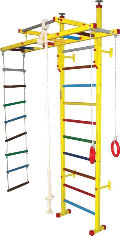 Навесной элемент СТ-002.1 рукоход навесной используемый в комплексе с Детским уголком СТ-002. Рукоход служит для расширения функций детского спортивного комплекса. Устанавливается в штатные места и не требует дополнительных доработок. Высокая прочность несущих конструктивных элементов обеспечивает безопасную нагрузку до 75 кг на перекладины и до 100 кг на турник. Рукоход окрашен в яркий цвет. Перекладины деревянные, окрашены в различные цвета. На турнике закреплены канат, кольца и веревочная лестница.