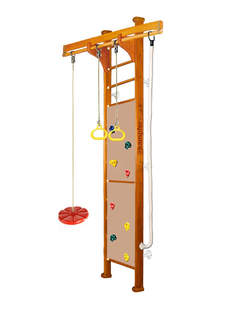 Домашний спортивно-игровой комплекс Kampfer Swift Wall это новинка на основе одной из самых популярных моделей из линейки деревянных ДСК Kampfer в цветовой гамме на выбор, что позволяет подобрать нужный оттенок под дизайн помещения. Модель Kampfer Swift включает в себя скалолазную стенку на двух стойках и перекладиной для навесного оборудования и набор из самых популярных навесных аксессуаров канат, кольца, а также лиану. Навесное оборудование Kampfer на прочных тросах выдерживает нагрузку до 100 кг. Особенностью Kampfer Swift является большой двойной скалолаз имеющий 8 пластиковых зацепов. Малышам очень нравится - лазить по скалолазной стенке развивая ловкость. Скалолазная стенка подходит для детей в возрасте от 4 лет и выдерживает максимальную нагрузку до 50 кг.