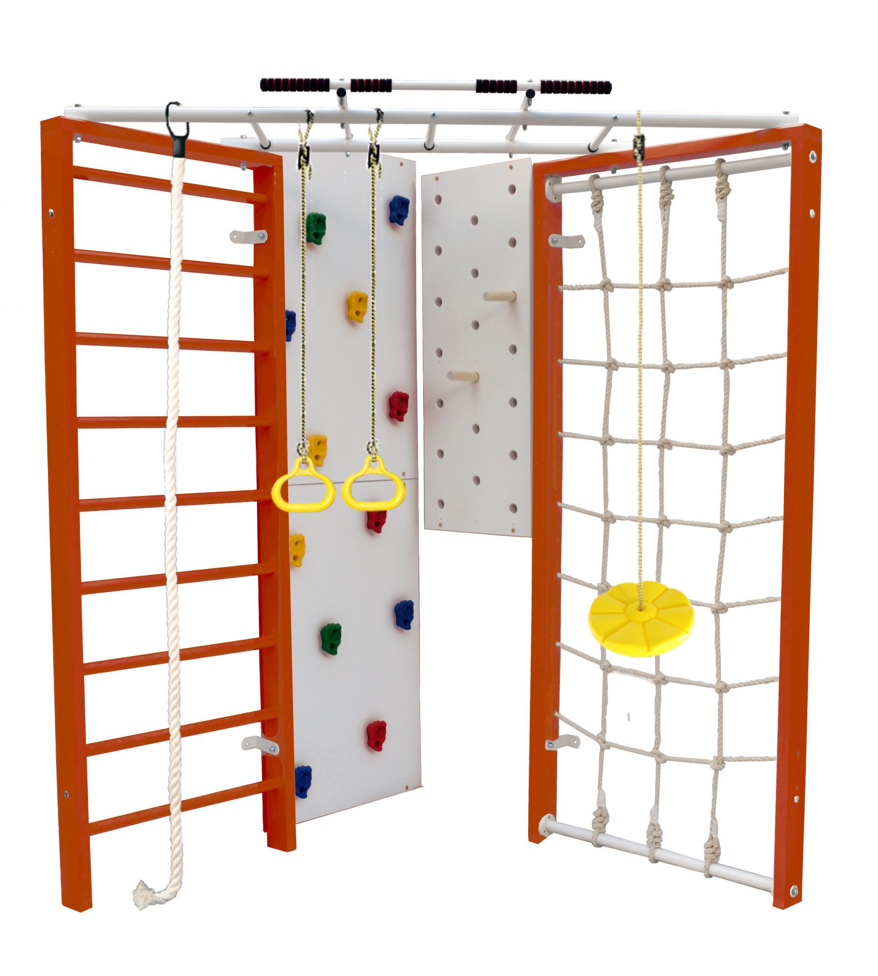 Модель Kampfer Fantastic включает в себя самый обширный набор аксессуаров - турник, шведскую стенку, канатный лаз, скалодром, пегборд, и самые популярное навесное оборудование канат, кольца и лиану. Крепкий металлический турник выдерживает нагрузку до 120 кг, подходит как детям так и взрослым. Навесное оборудование Kampfer на прочных тросах выдерживает нагрузку до 100 кг. Допустимая нагрузка на скалолаз, пегборд, канатный лаз и навесное оборудование 50 кг. Особенностью пристенной шведской стенки Kampfer Fantastic является угловая конструкция, большой двойной скалолаз имеющий 12 пластиковых зацепов. Малышам очень нравится - лазить по скалолазу, забираться вверх по сетке канатного лаза, перебираться по пегборду, висеть на канате и качаться на лиане.