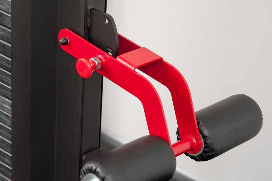 3) Удобная регулировка упора для ног верхней тяги. Он имеет 1 начальное и 8 рабочих положений для настройки положения мягких валиков под спортсменов любого роста.