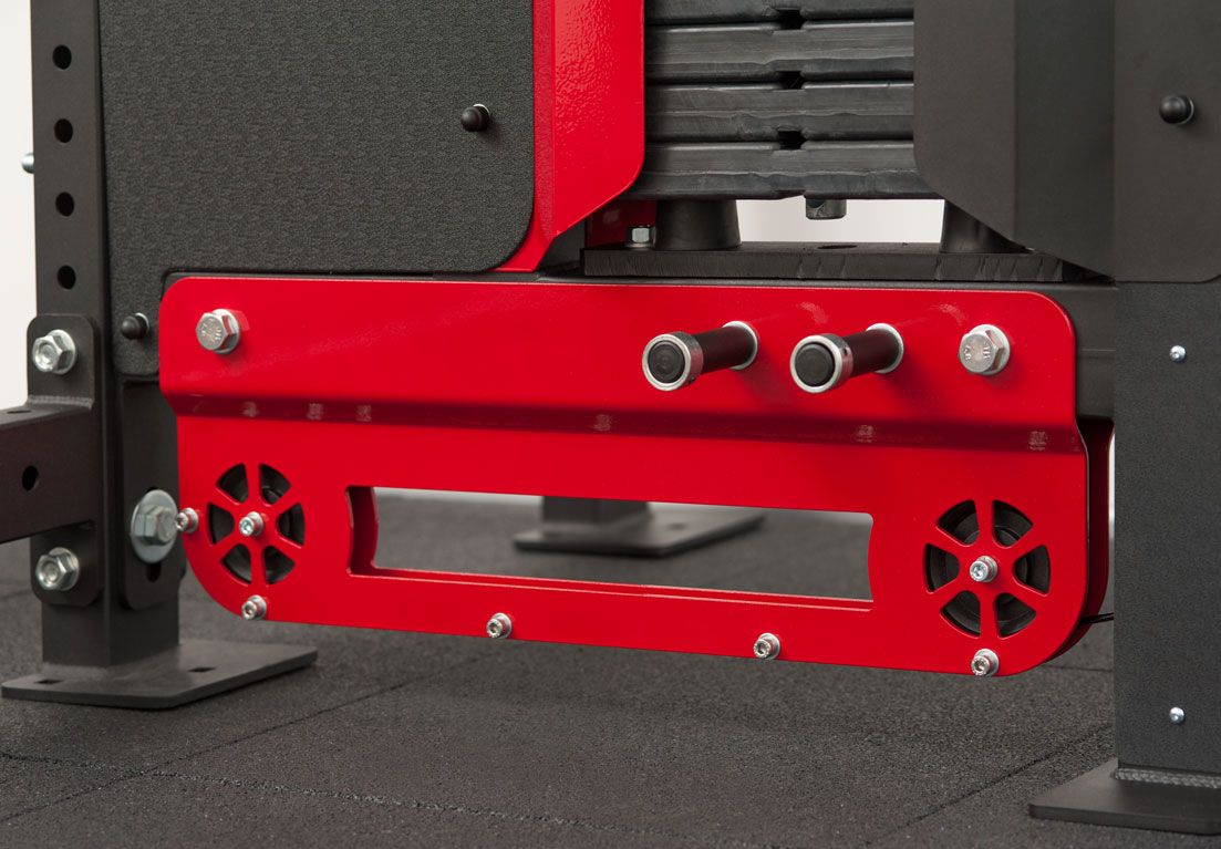 5) Специальные зацепы для тренировки с резиновыми петлями. Кроме плиток грузоблочного стека общим весом 100 кг Вы можете устанавливать на них дополнительно резиновые петли и с их помощью увеличивать нагрузку.