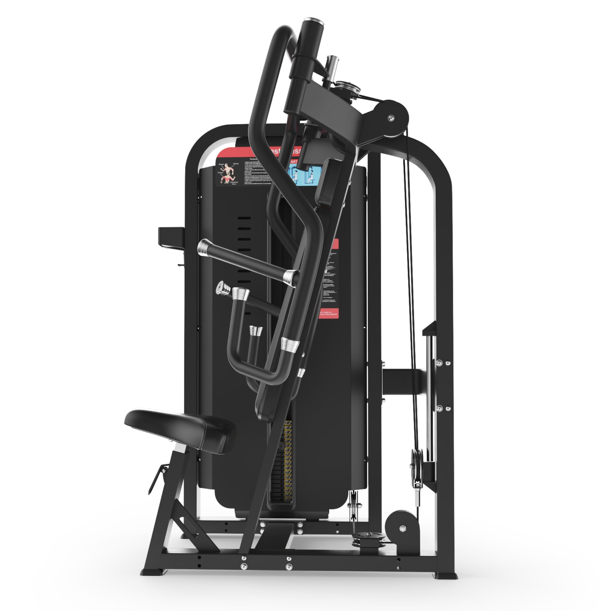 - Инструкция по выполнению упражнений: размещена на защитном кожухе весового стека, с крупными схематическими изображениями исходного и конечного положения