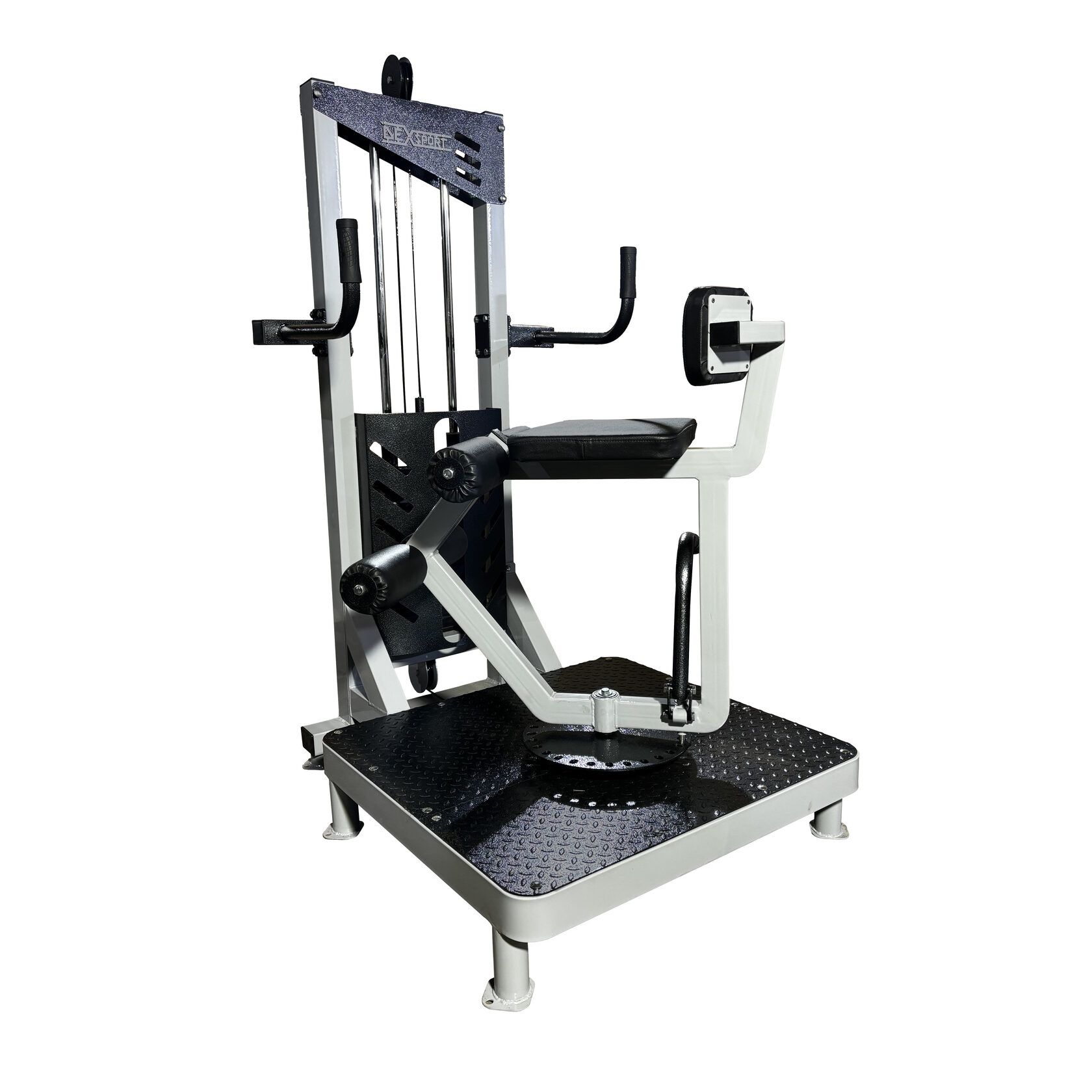 Торс-машина оборудована валиками для надежной фиксации ног и грузовым стеком на 70 кг, защищенным металлическим кожухом. Эргономичная конструкция тренажера для мышц пресса обеспечивает комфорт и безопасность во время интенсивных тренировок.
