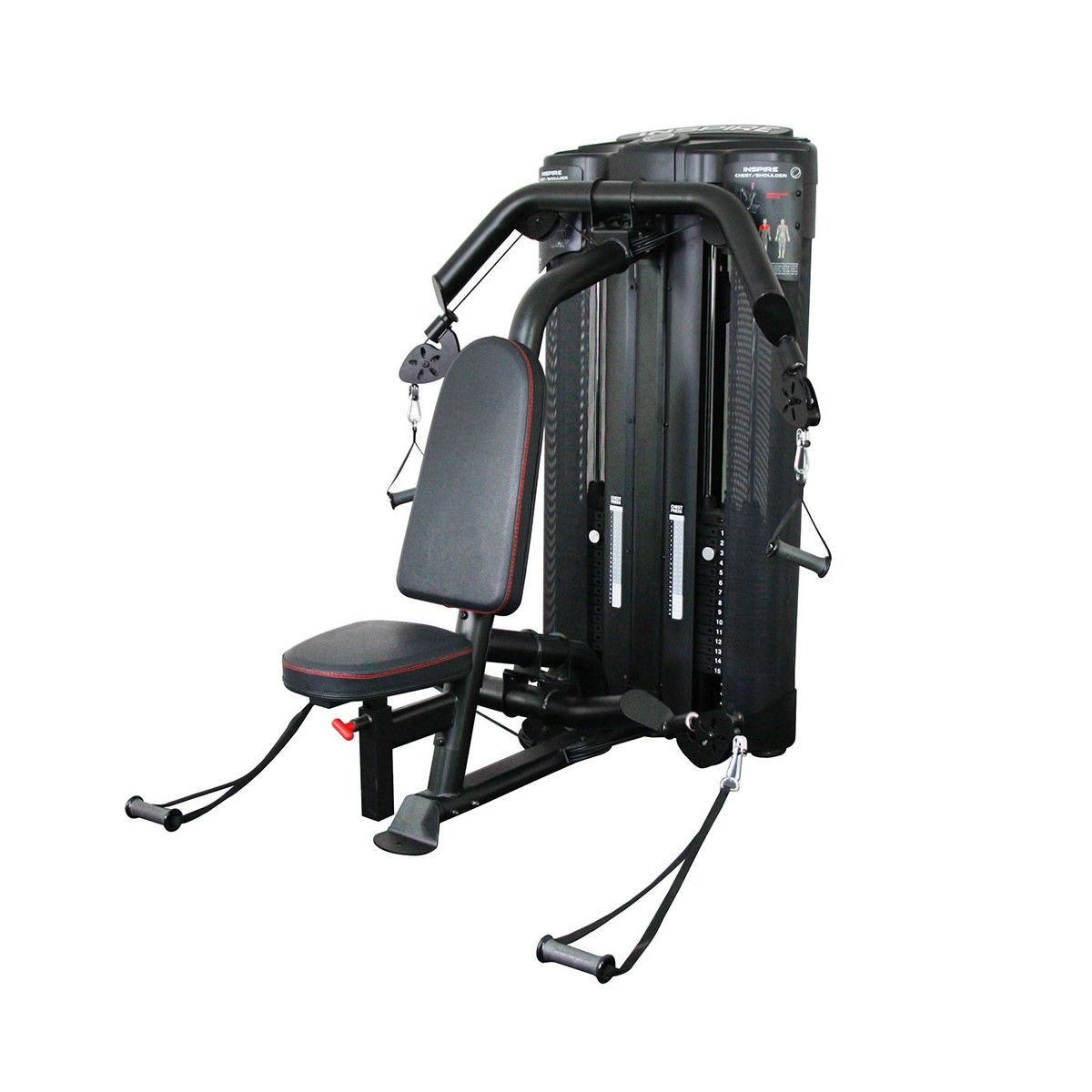 Компактный, но многофункциональный, стильный, но практичный – этот тренажер прекрасно впишется в интерьер вашего зала. Этот комбинированный функциональный тренажер можно смело назвать «мультистанцией». На нем можно выполнять грудной и плечевой жим в положении сидя.