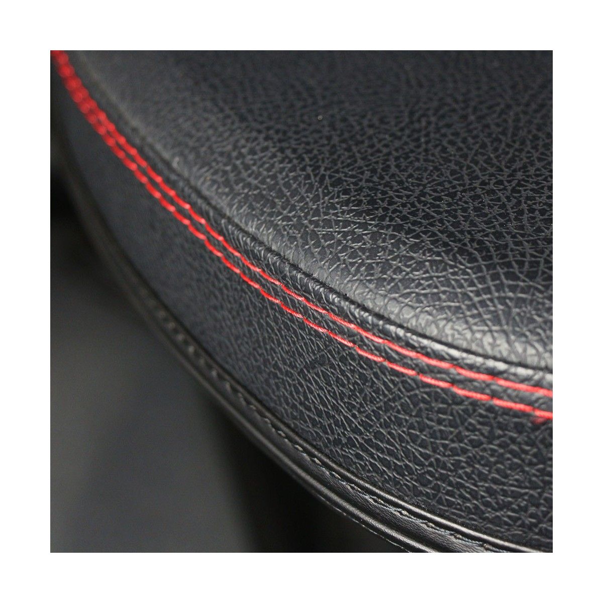 Покрытие сидений из синтетической экокожи прошито по периметру двойной красной строчкой для обеспечения дополнительной прочности и устойчивости к внешним воздействиям.