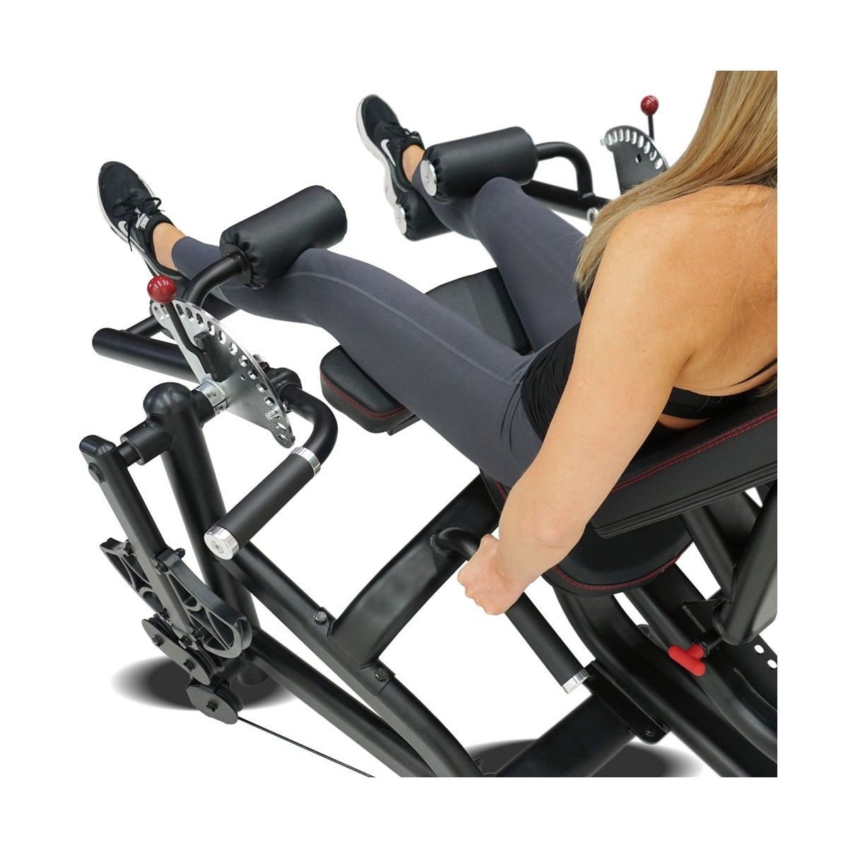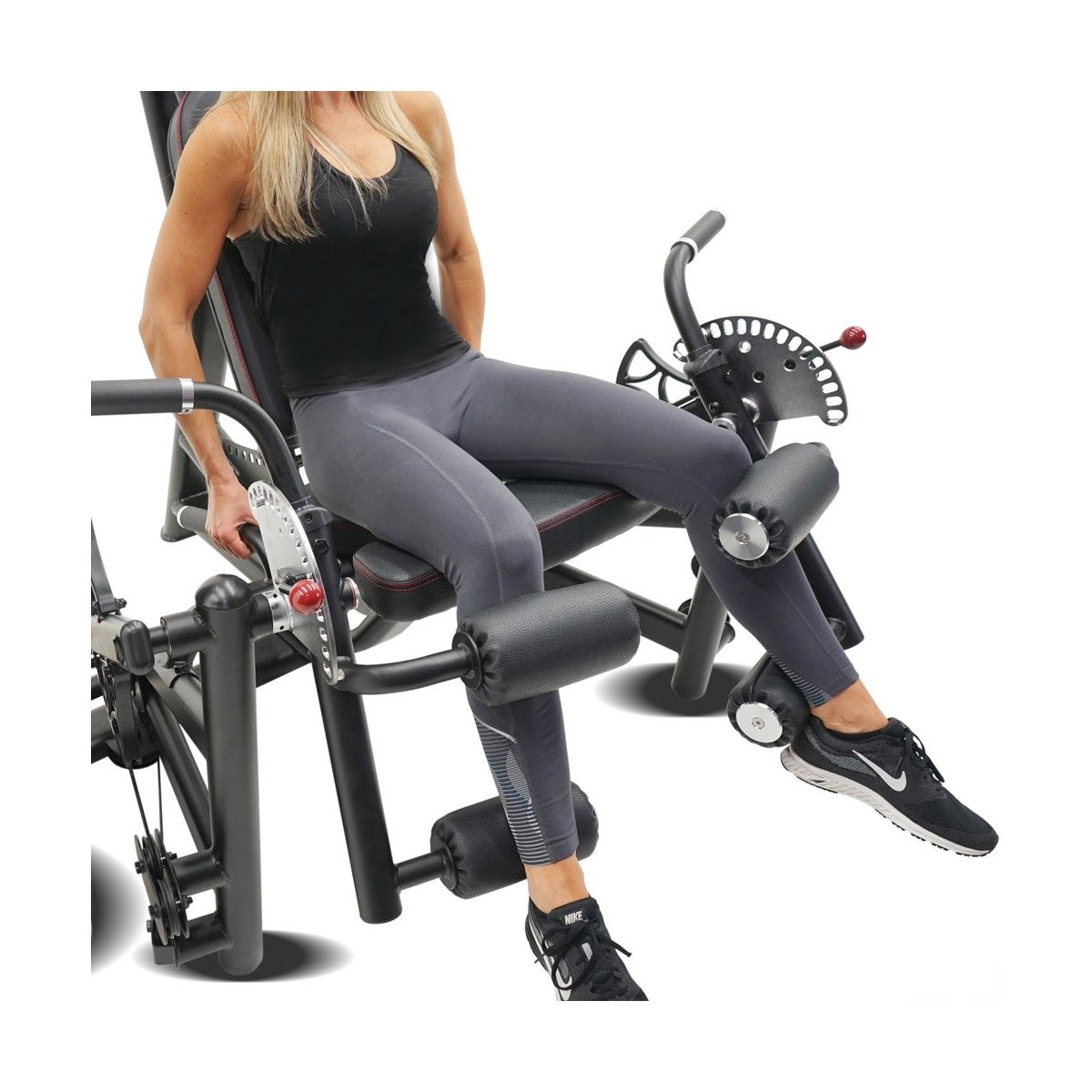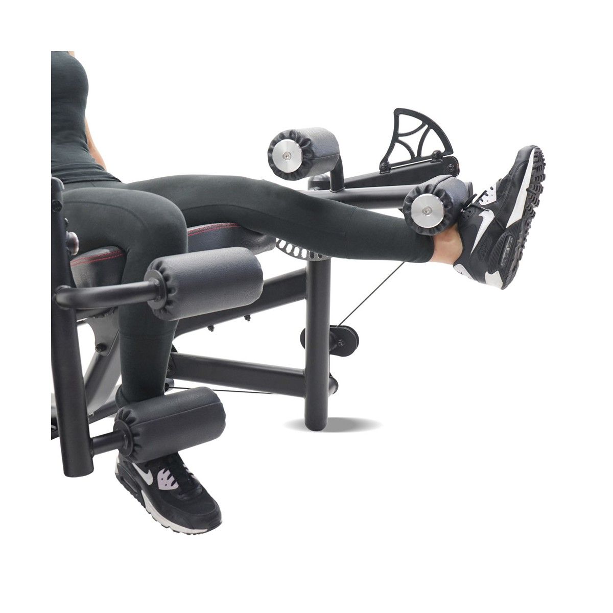Тренажер предназначен для выполнения упражнений на разгибание и сгибание ног сидя.