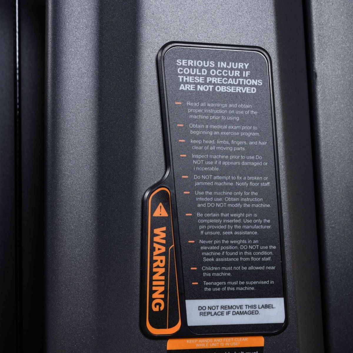 Металлическая защита весового стека с обеих сторон, с отверстием с завальцованными внутрь гранями для безопасного выбора нагрузки.