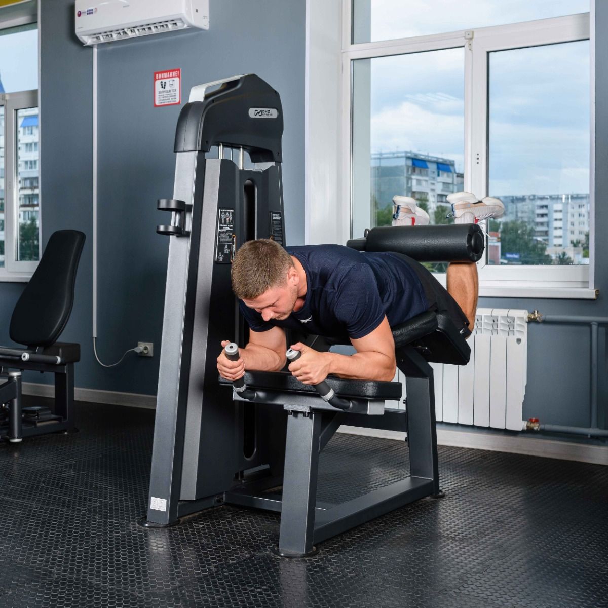 Нескользящие прочные рукоятки с резиновым покрытием и декоративными заглушками – наконечниками зафиксированные болтом, расположены под оптимальным углом для надежной фиксации тела атлета во время тренировки.