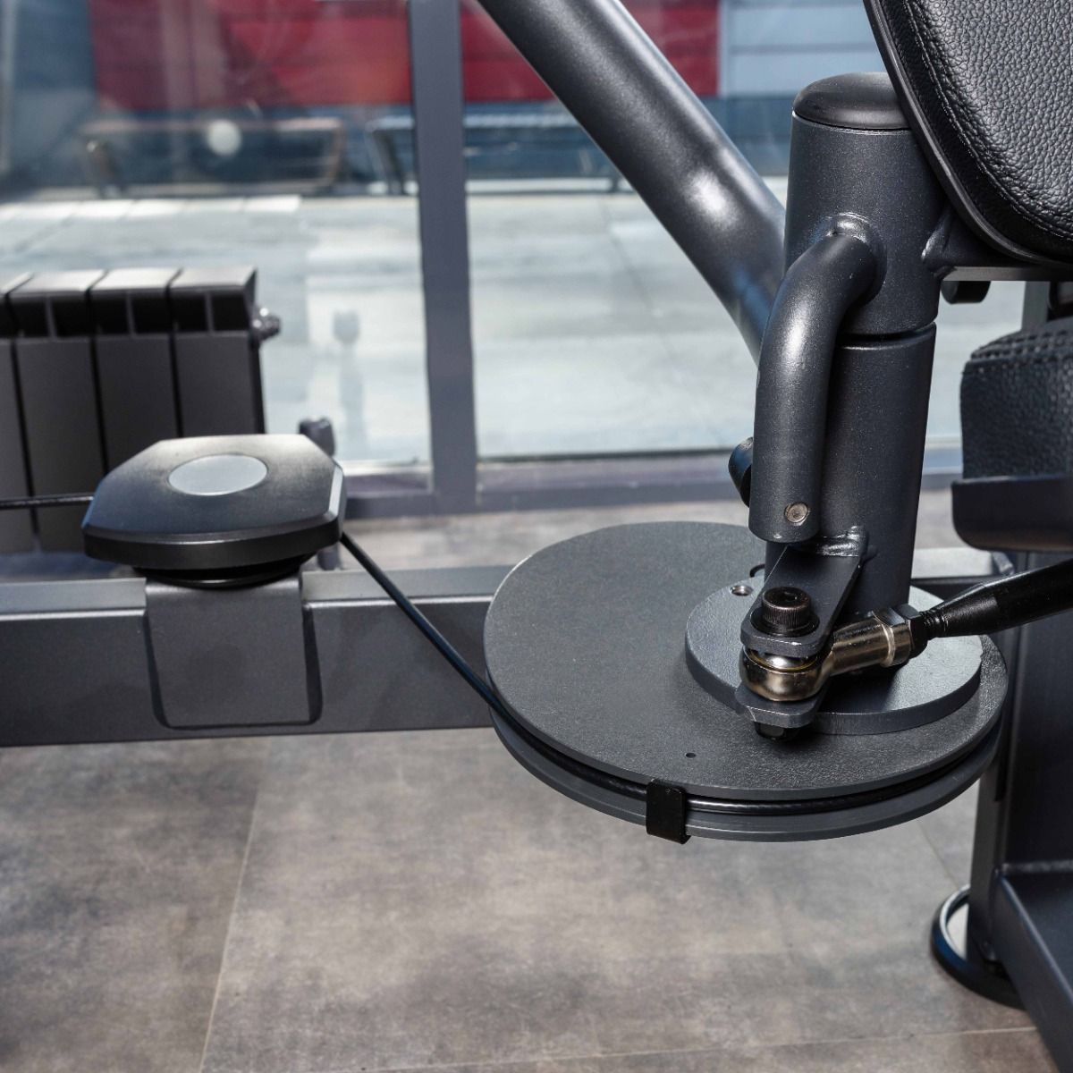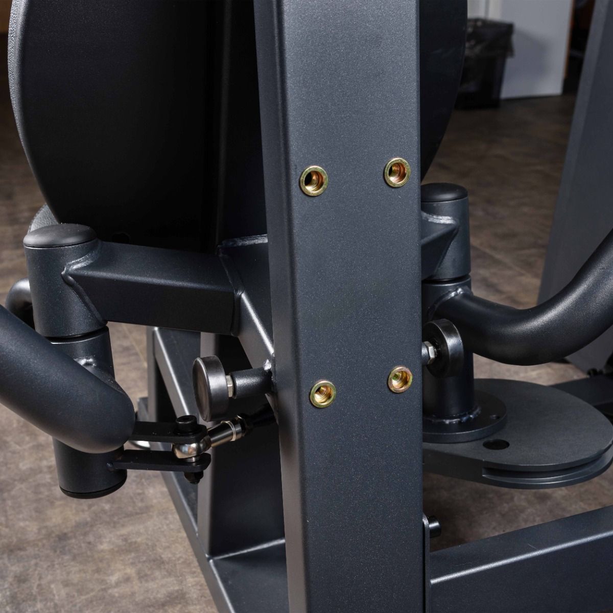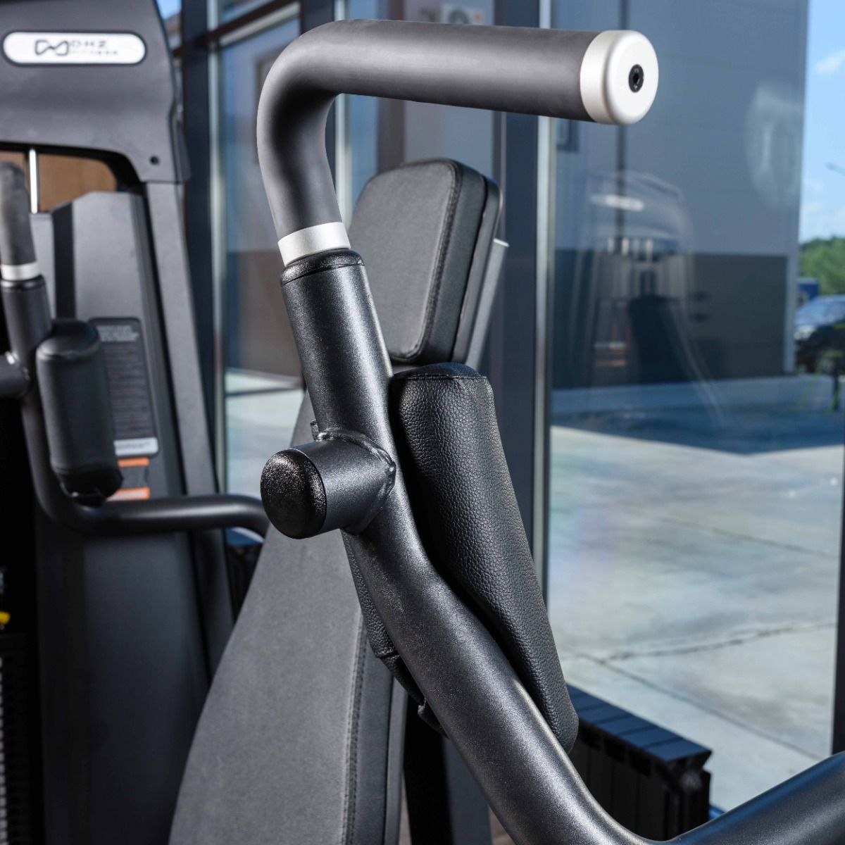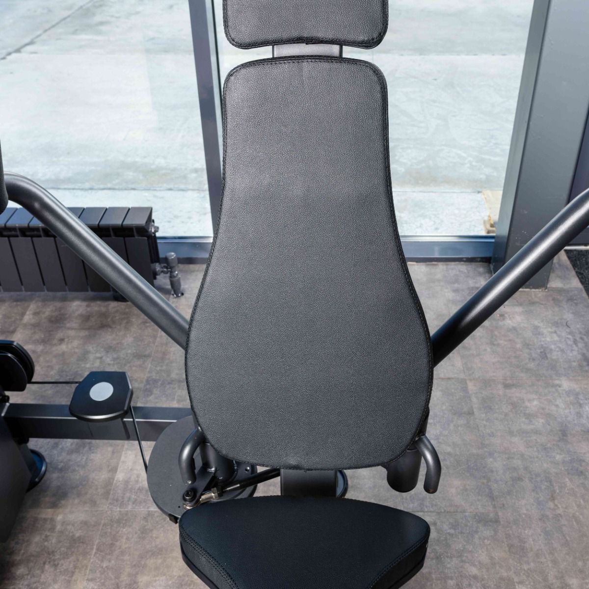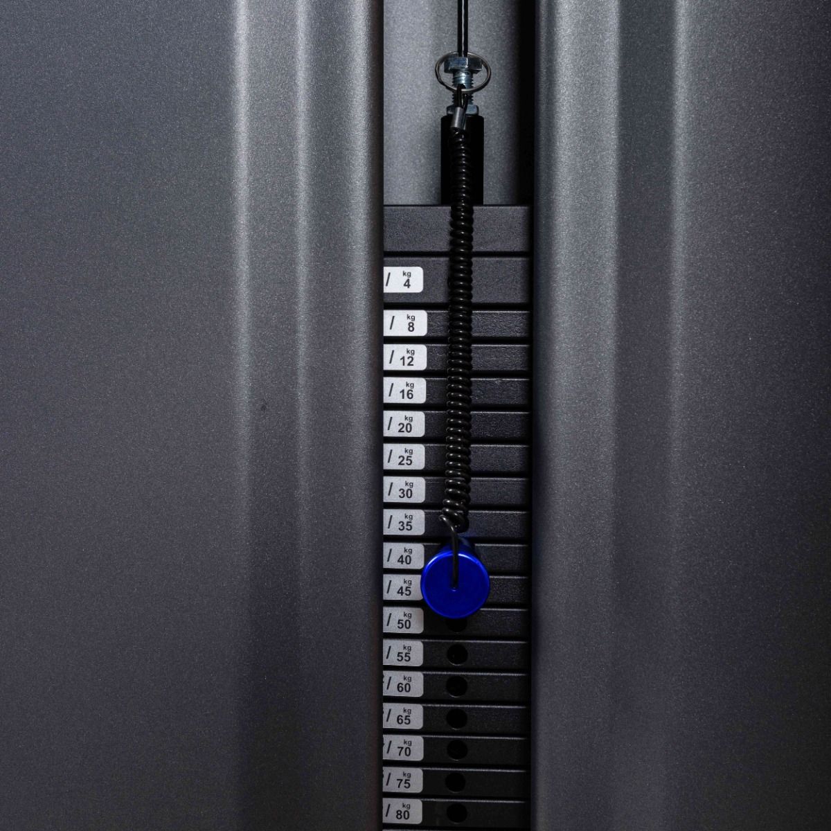 Металлическая защита весового стека с обеих сторон, с отверстием с завальцованными внутрь гранями, для безопасного выбора нагрузки.