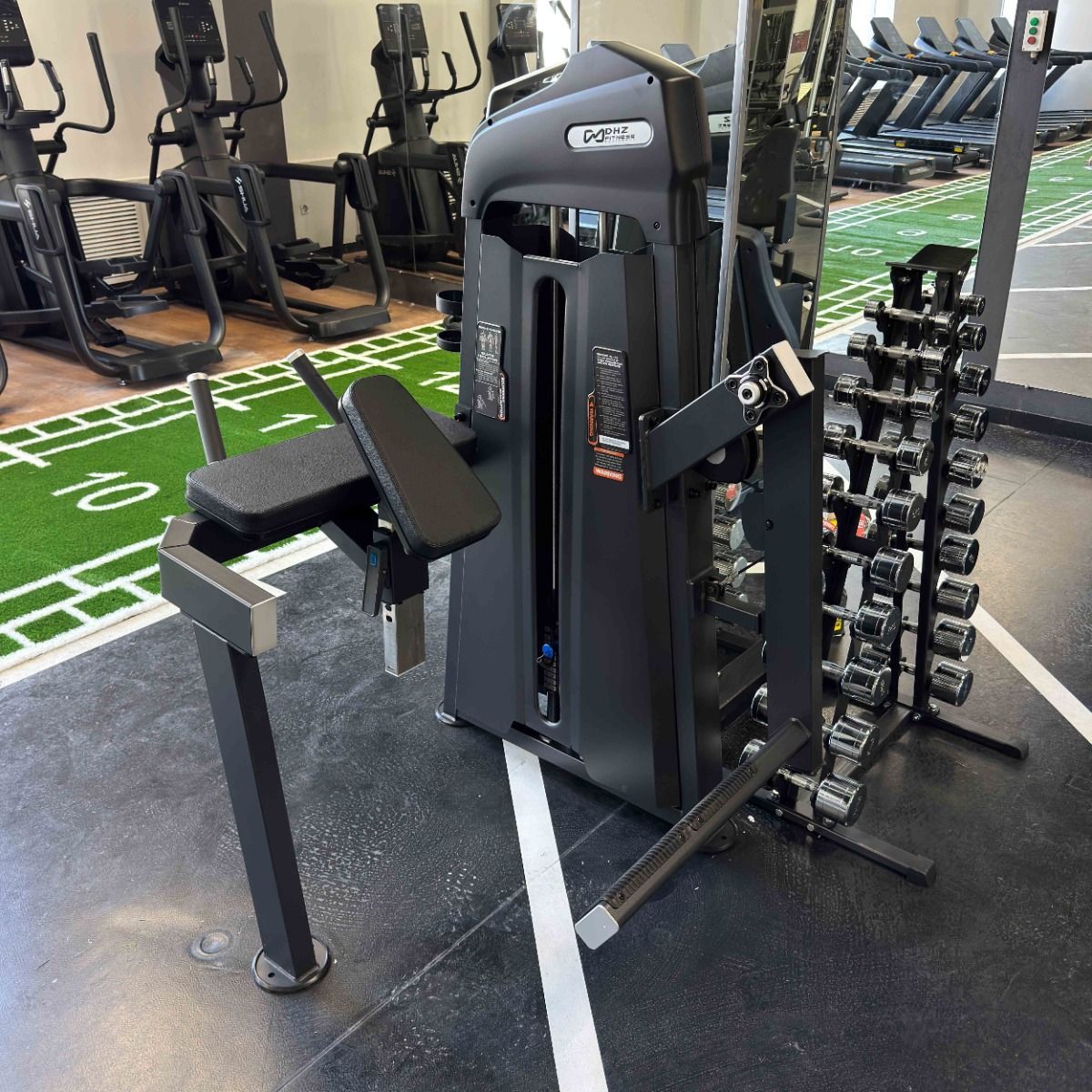 Нескользящие прочные рукоятки с резиновым покрытием и декоративными заглушками – наконечниками зафиксированные болтом, расположены под оптимальным углом для надежной фиксации тела атлета во время тренировки.