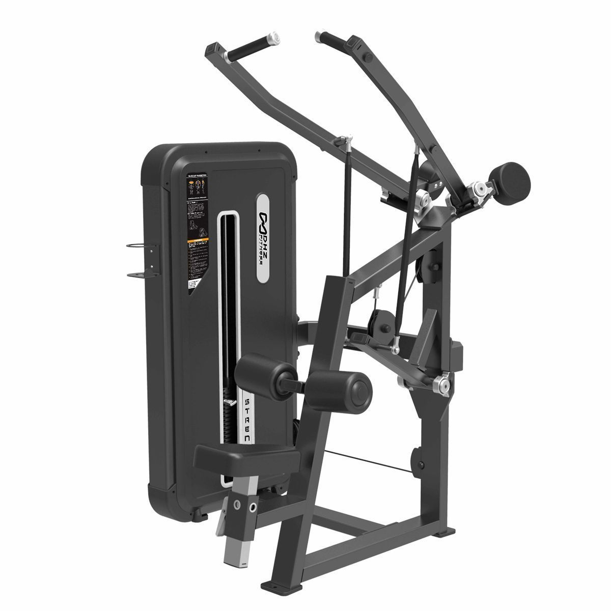 • Пластиковая защита весового стека с обеих сторон, с отверстием окантованным прорезиненным пластиком для безопасного выбора нагрузки.