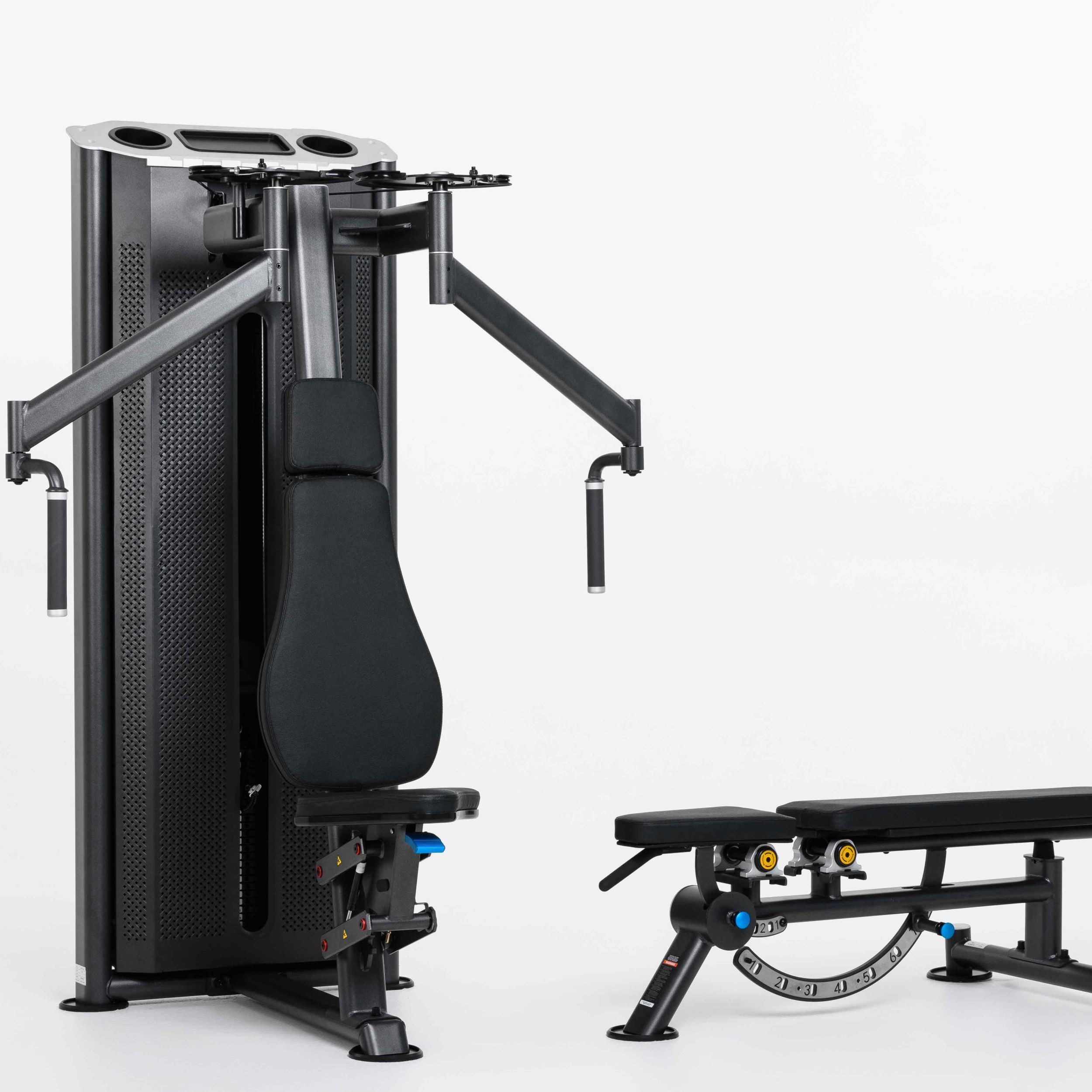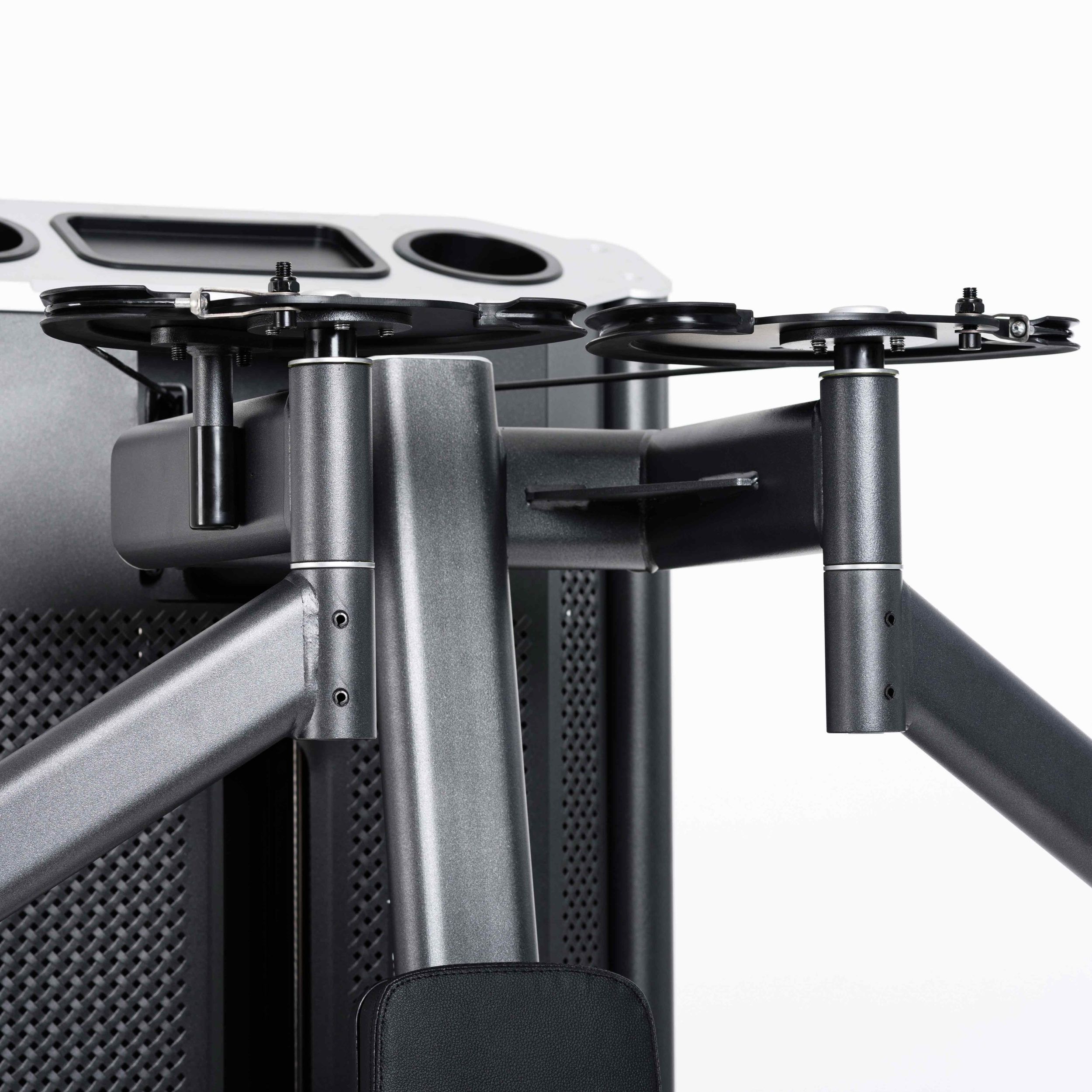 Верхняя часть грузоблока закрыта анодированным алюминиевым коробом с углублениями круглой и прямоугольной формы для хранения личных вещей.