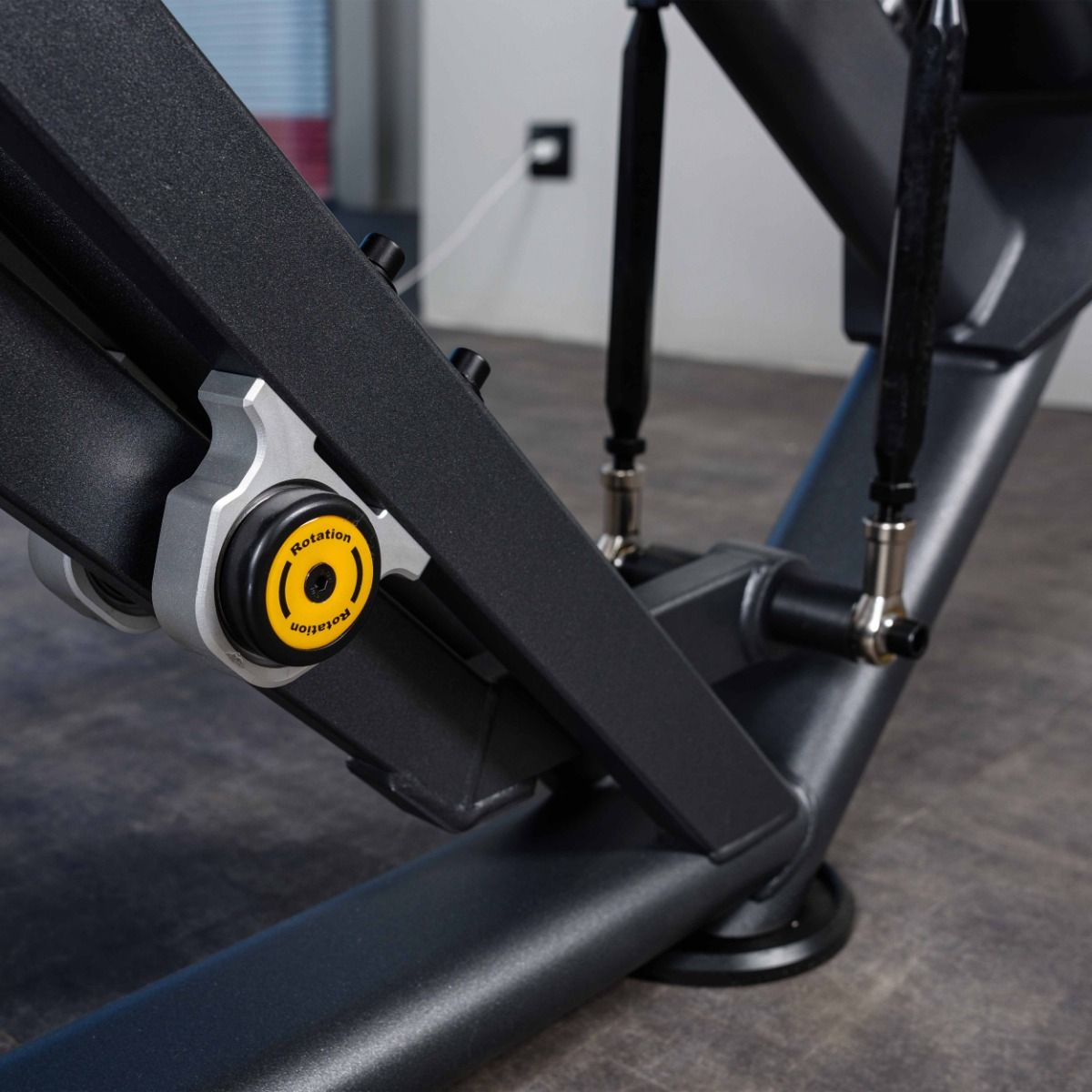 Прорезь в защитном кожухе грузоблока для доступа к регулировке нагрузки шлифованная с завальцованными внутрь гранями по всему периметру для безопасного доступа к весовому стеку и обеспечения дополнительной жёсткости рамы грузоблока.