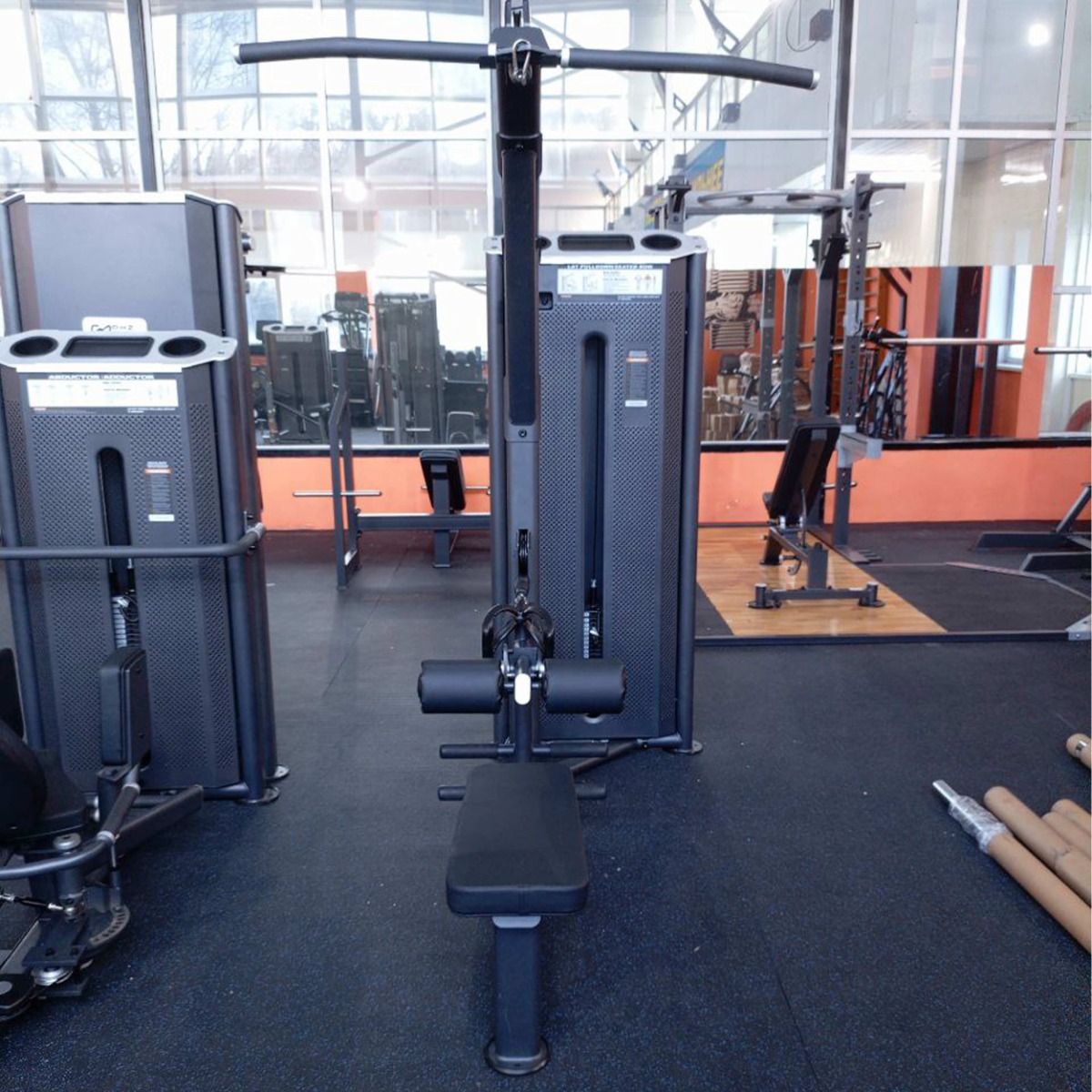 Тренажер имеет два вида рукояток для упражнений Тяга сверху и Гребная тяга.