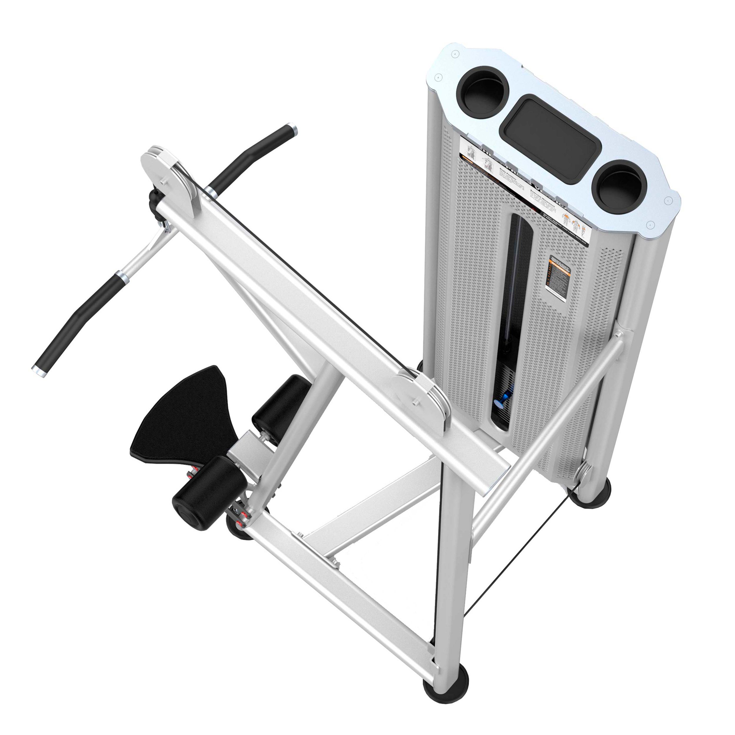 Металлическая перфорированная защита весового стека с лицевой стороны и сплошная защита с задней стороны выполнена из листового металла толщиной 2 мм. Ребра жесткости у основания, примыкающие к несущей раме через скрытое болтовое соединение сечением 6 мм в восьми точках, повышают эксплуатационные параметры тренажера.