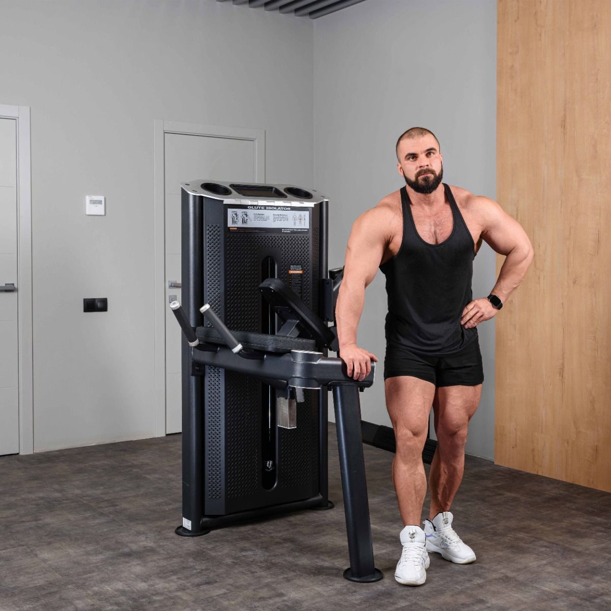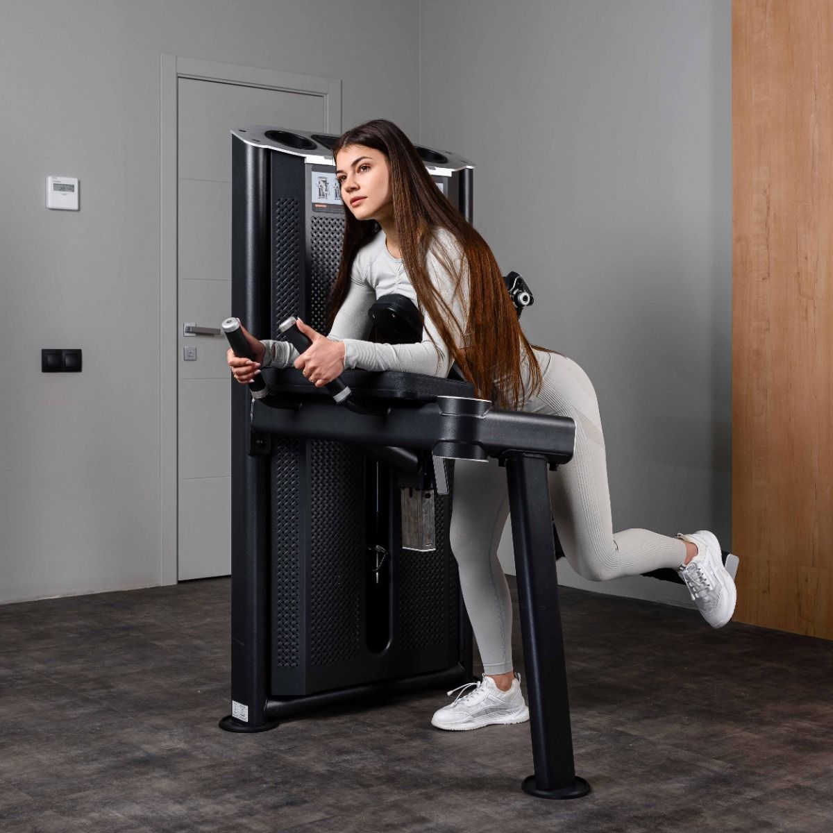 Рычаг для ног, оборудованный нескользящими резиновыми вставками с рифленой поверхностью для устойчивого положения, движется по нелинейной траектории, тем самым обеспечивает концентрацию на целевых мышцах.