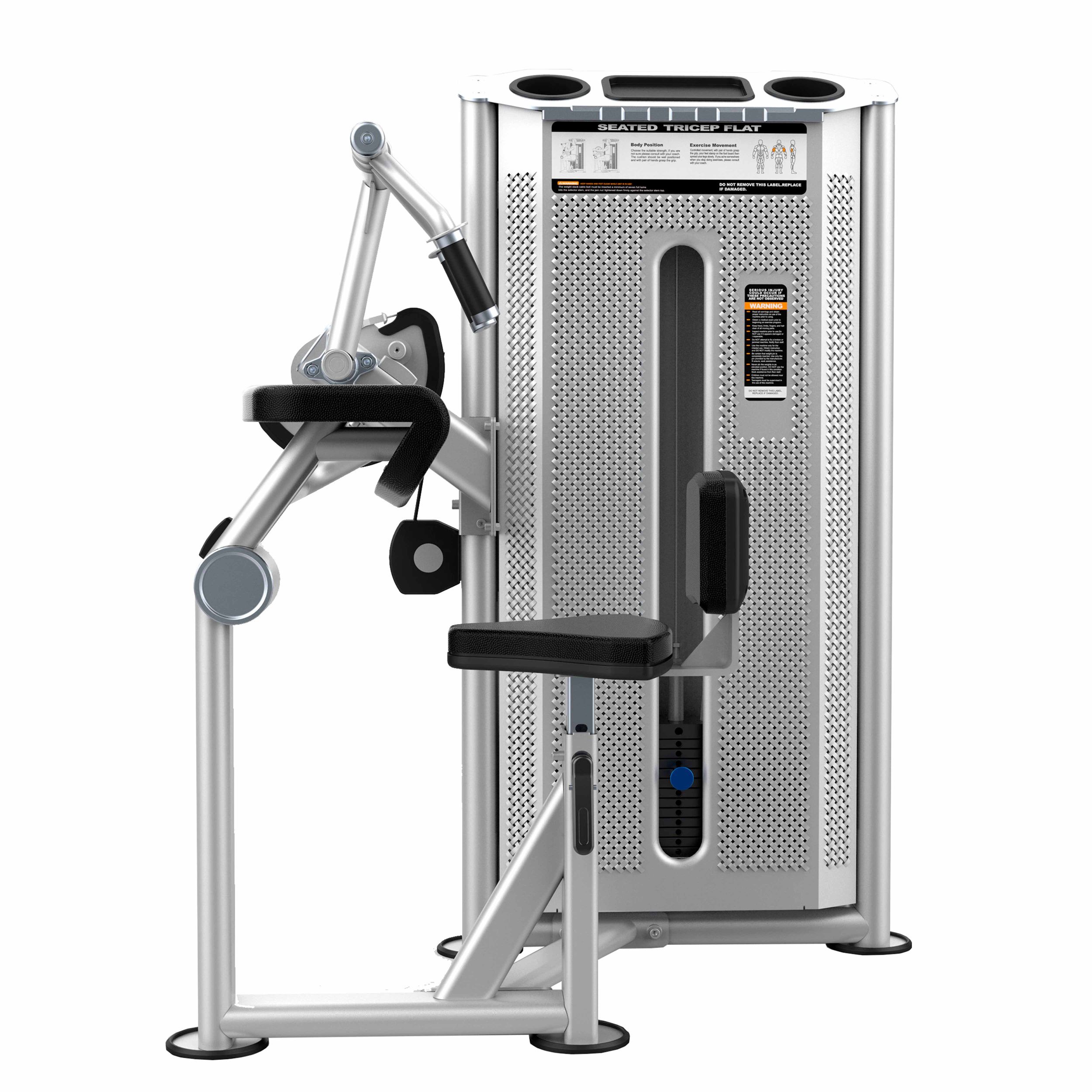 Металлическая перфорированная защита весового стека с лицевой стороны и сплошная защита с задней стороны выполнена из листового металла толщиной 2 мм. Ребра жесткости у основания, примыкающие к несущей раме через скрытое болтовое соединение сечением 6 мм в восьми точках, повышают эксплуатационные параметры тренажера.