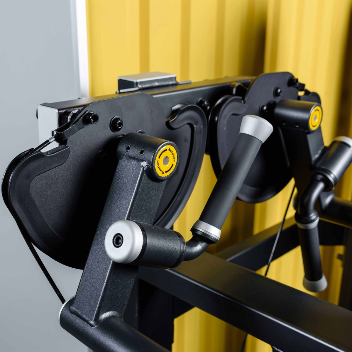 Нескользящие прочные рукоятки с резиновым покрытием и декоративными заглушками – наконечниками из полированного нержавеющего металла зафиксированные болтом, расположены под оптимальным углом для надежной фиксации тела атлета во время тренировки.
