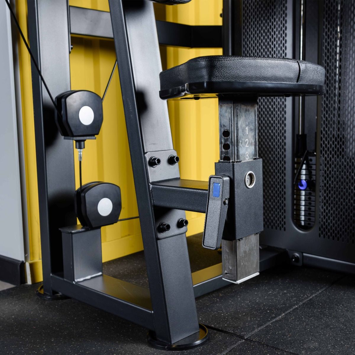Металлическая, перфорированная защита весового стека с обеих сторон, выполнена из листового метала толщиной 2мм, с ребрами жесткости у основания, примыкает к несущей раме через скрытое болтовое соединение сечением 6мм в 8 точках, что повышает эстетические и эксплуатационные параметры тренажера.
