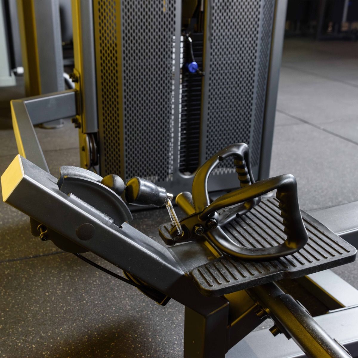 Металлическая, перфорированная защита весового стека с обеих сторон, выполнена из листового метала толщиной 2мм, с ребрами жесткости у основания, примыкает к несущей раме через скрытое болтовое соединение сечением 6мм в 8 точках, что повышает эстетические и эксплуатационные параметры тренажера.