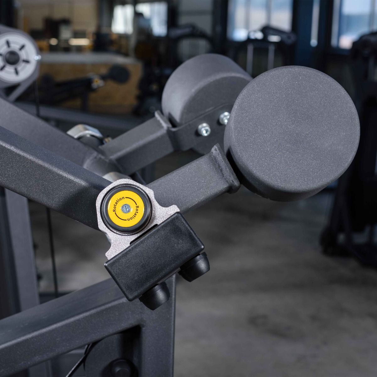 Опорные валики для фиксации ног обеспечивают стабильное положение пользователя во время выполнения тяги.