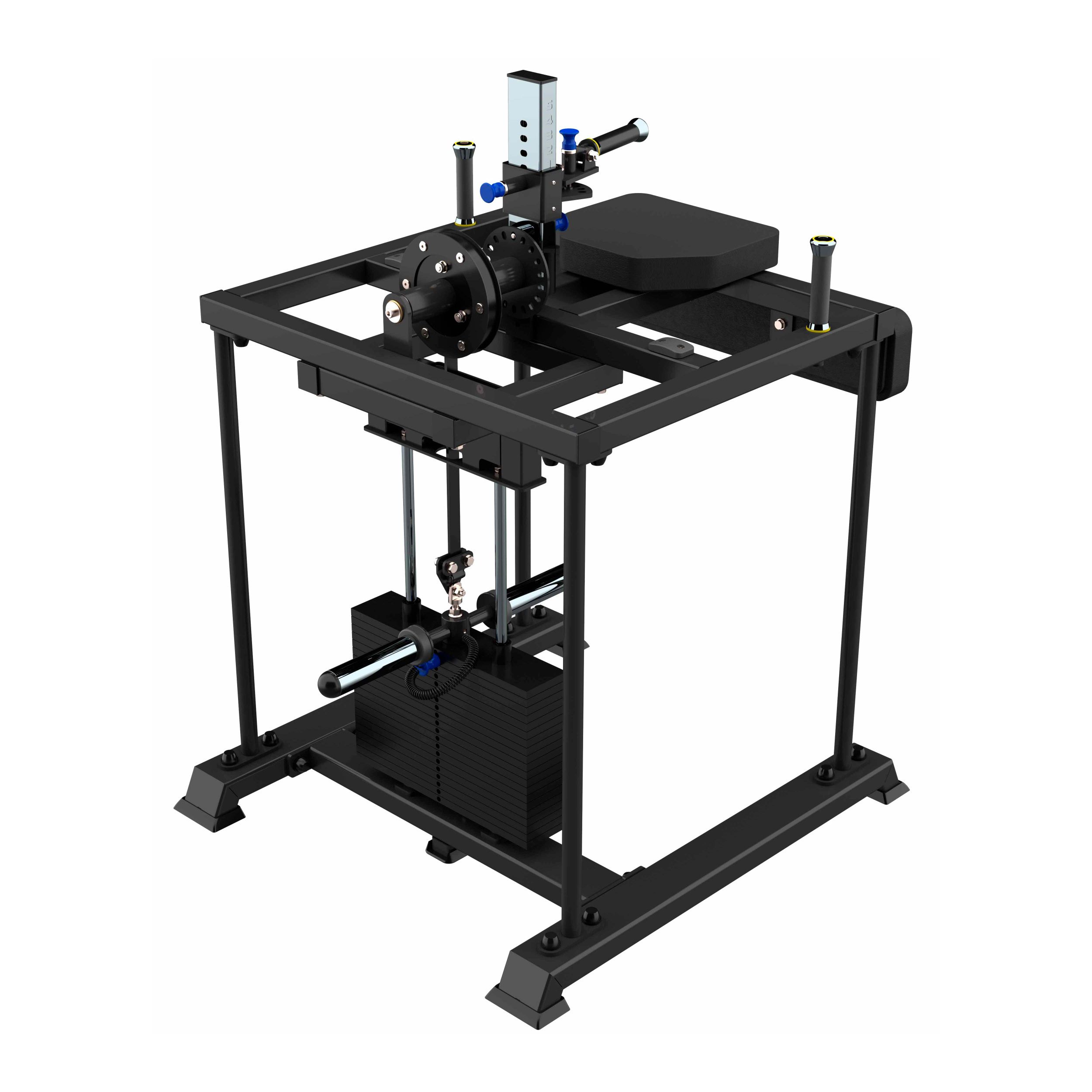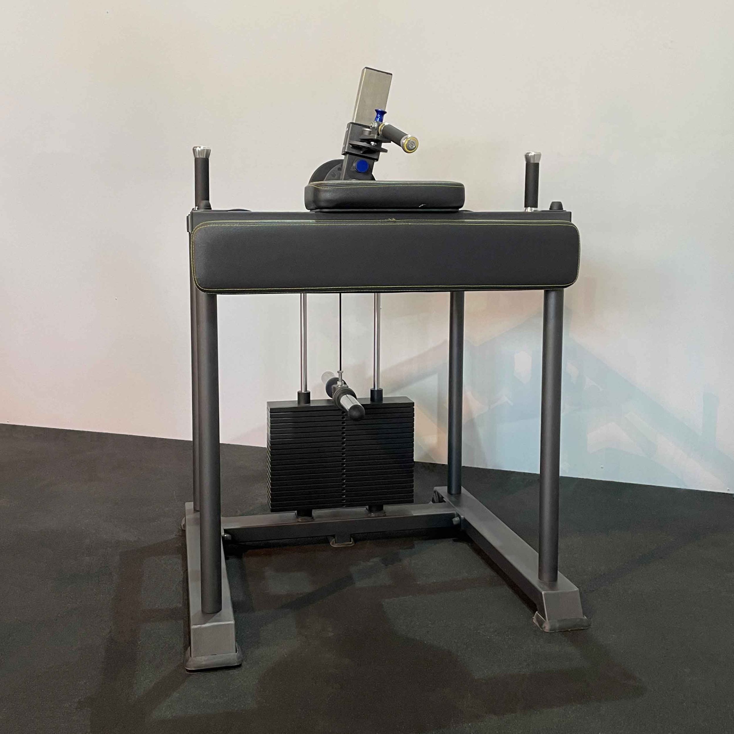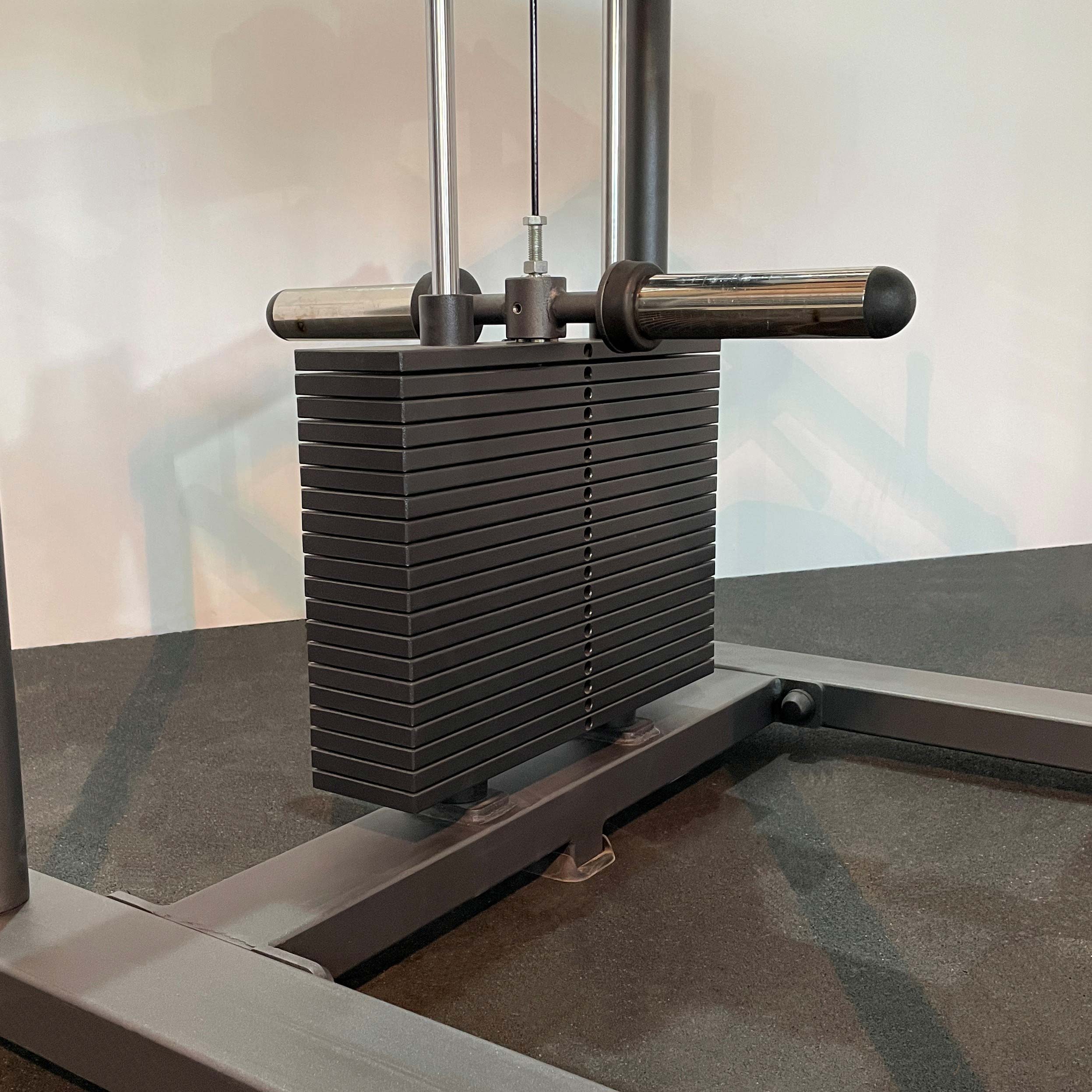 Система нагрузки – тросовая, с весовым стеком 100 кг. Дополнительно на грузоблочном узле установлены два накопителя для свободных весов, позволяющие увеличить нагрузку ещё на 60 кг.