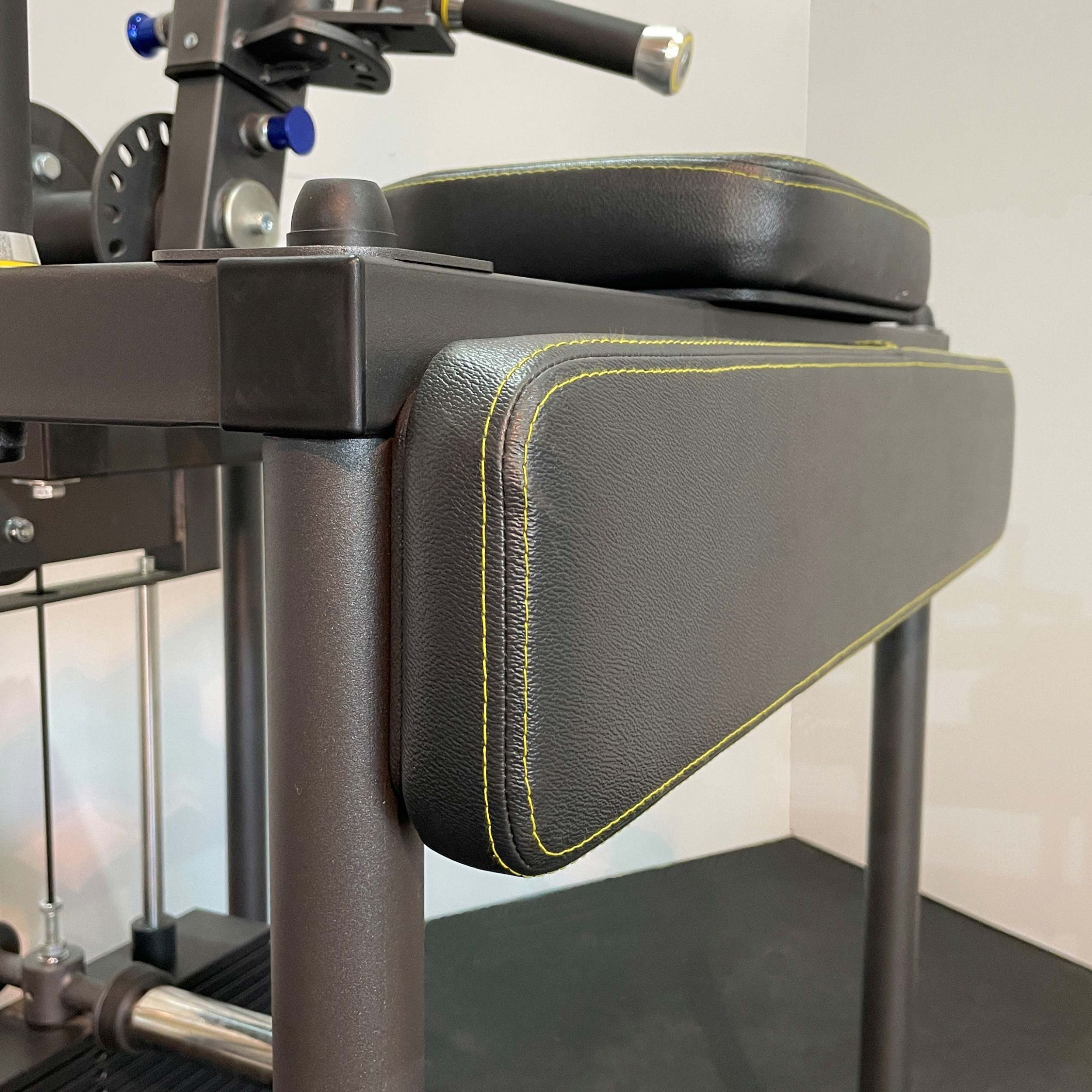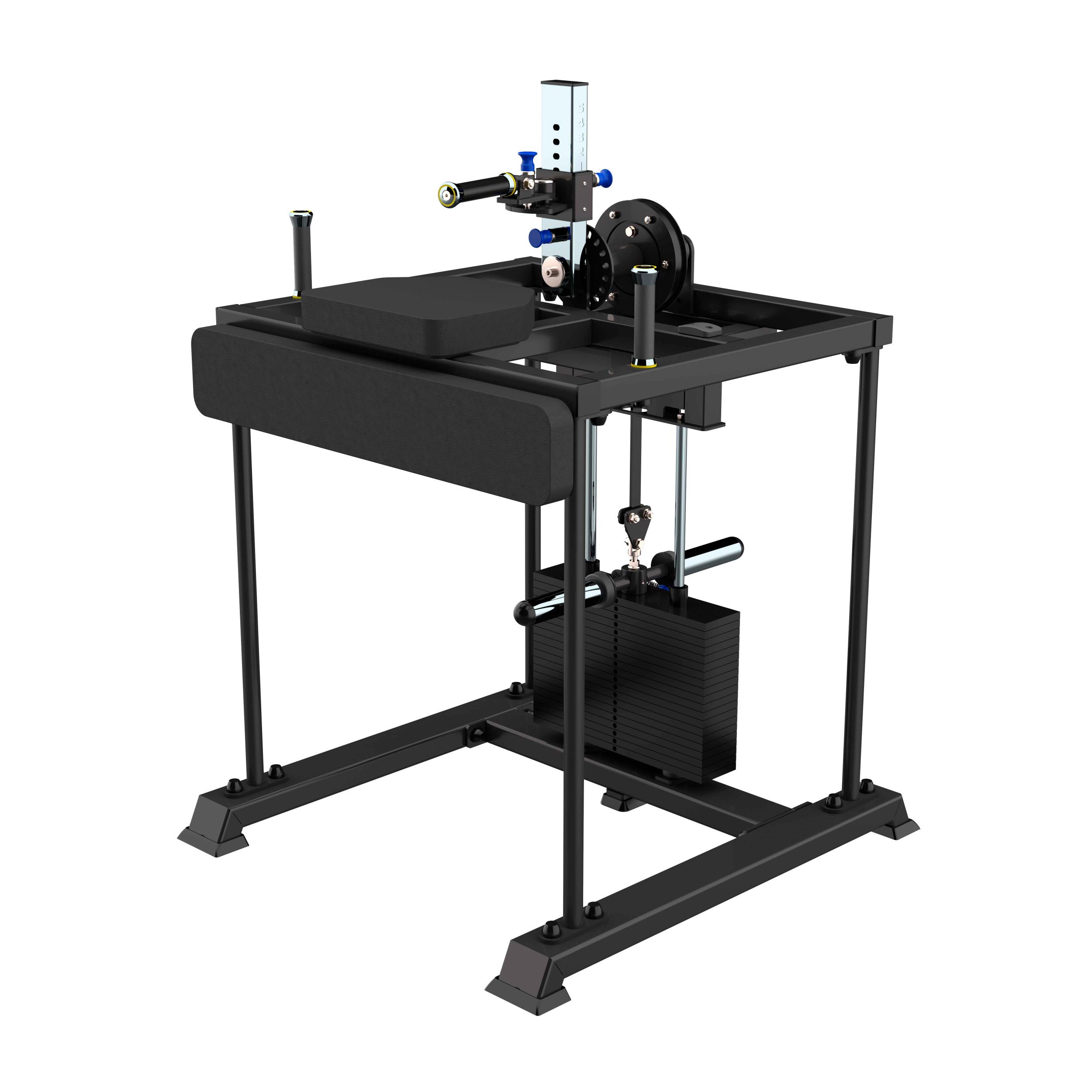 Рабочая поверхность выполнена в формате армрестлинг-стола и оснащена боковой опорной подушкой для фиксации корпуса и верхней подушкой для предплечья.