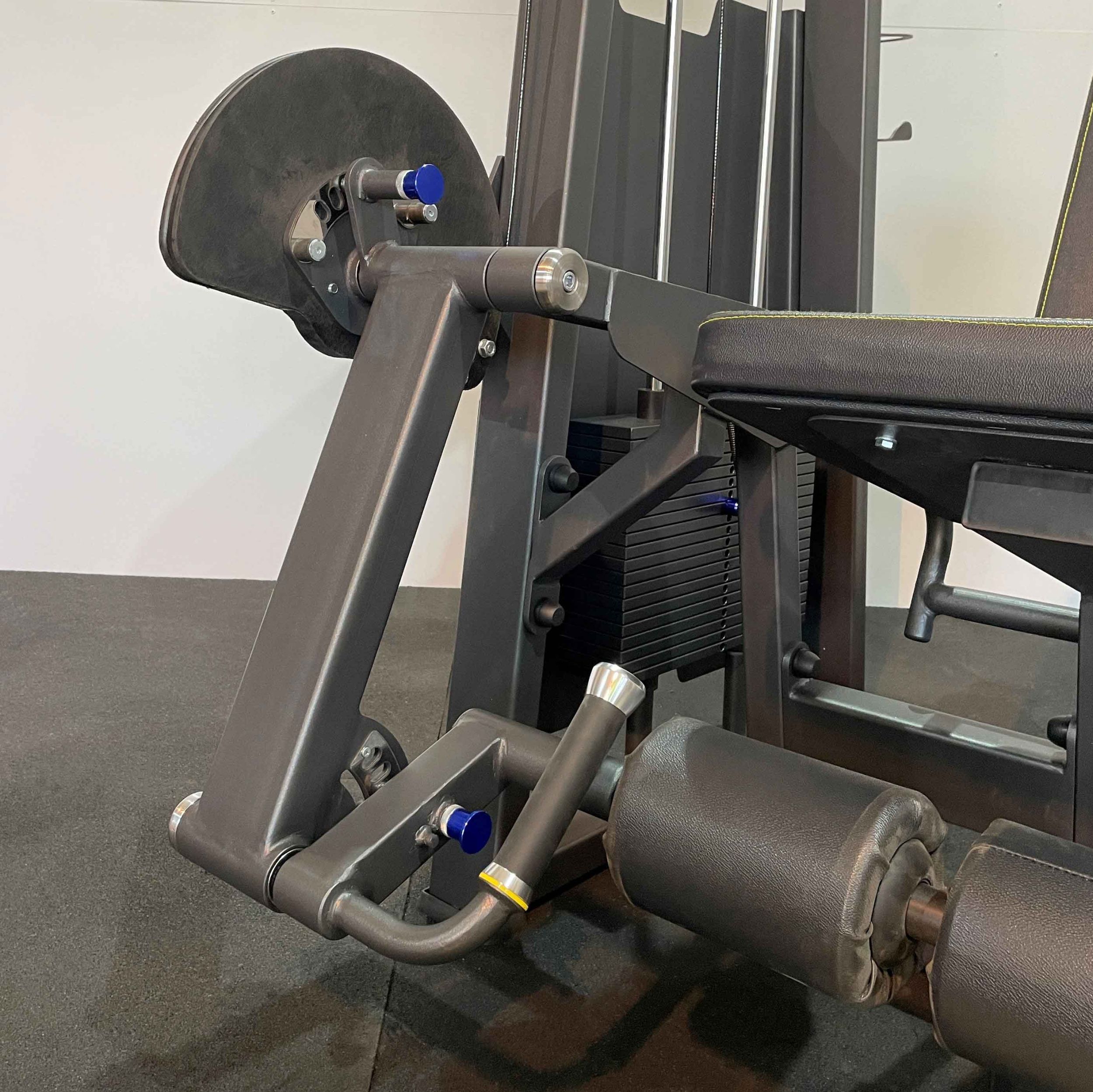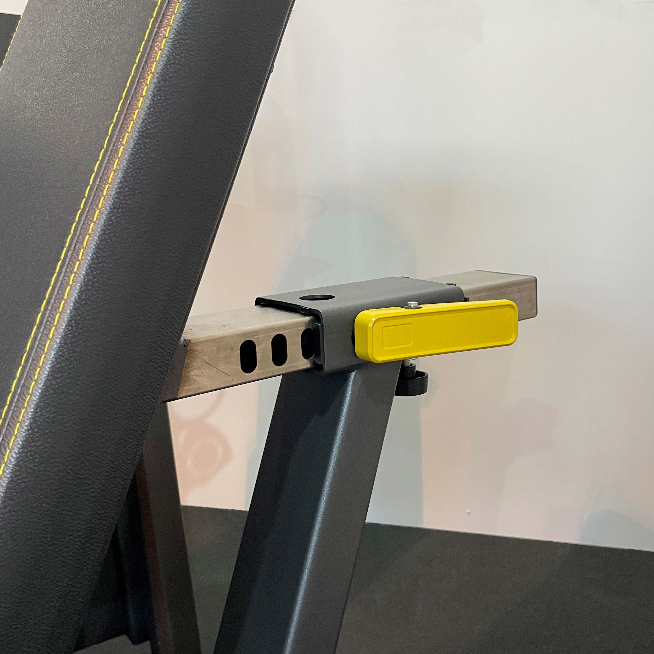 Валик для ног регулируется по дугообразной траектории в пяти положениях при помощи механического фиксатора. В зоне регулировки установлена рукоять с обрезиненным покрытием и торцевой заглушкой для удобства настройки.