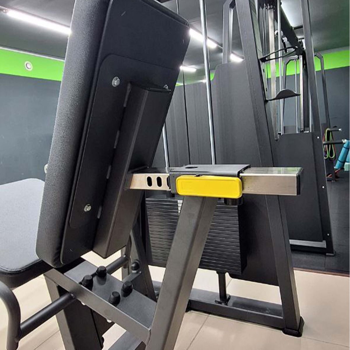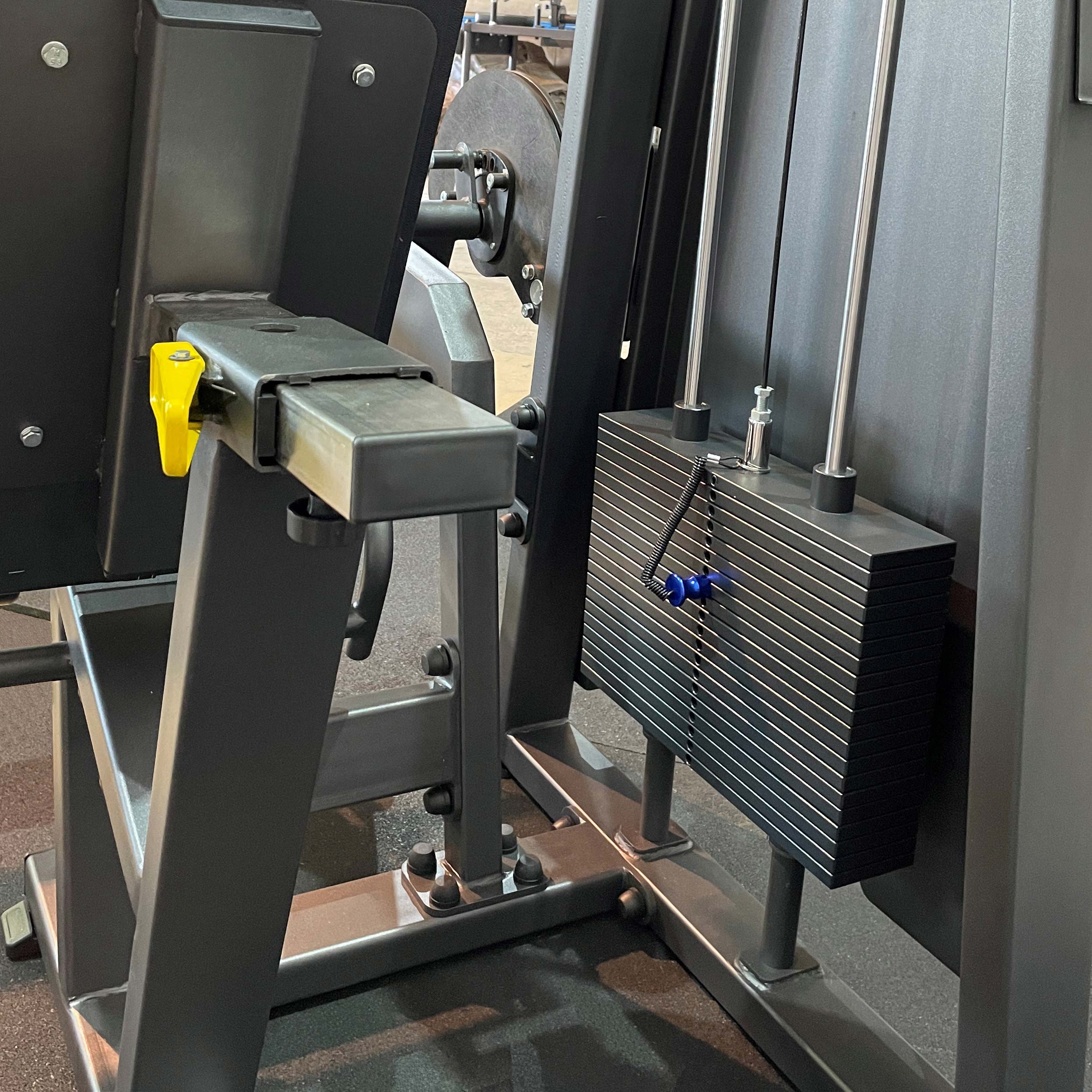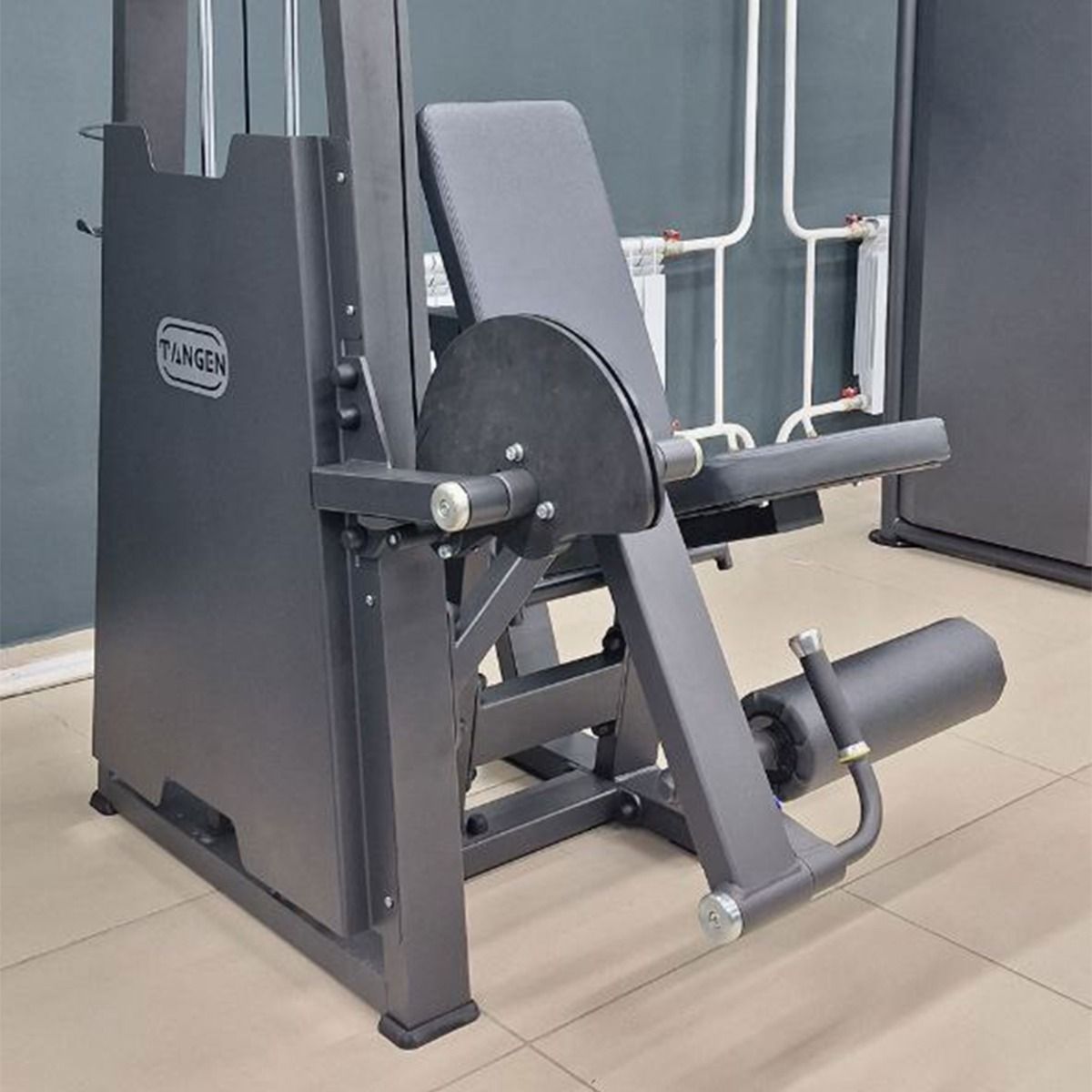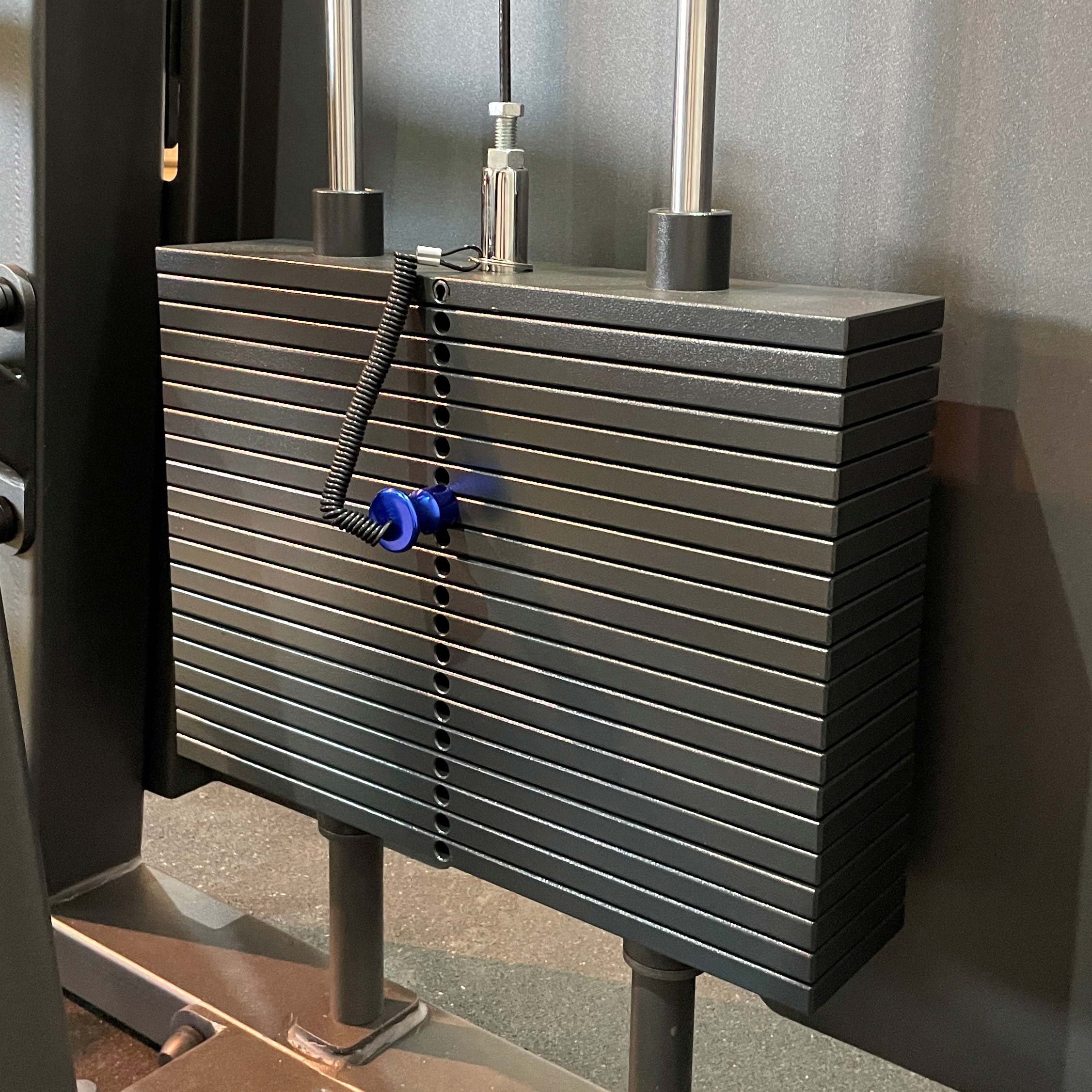 Система нагрузки – тросовая, с весовым стеком 100 кг. Весовой стек выполнен из стальных плит с порошковым покрытием.