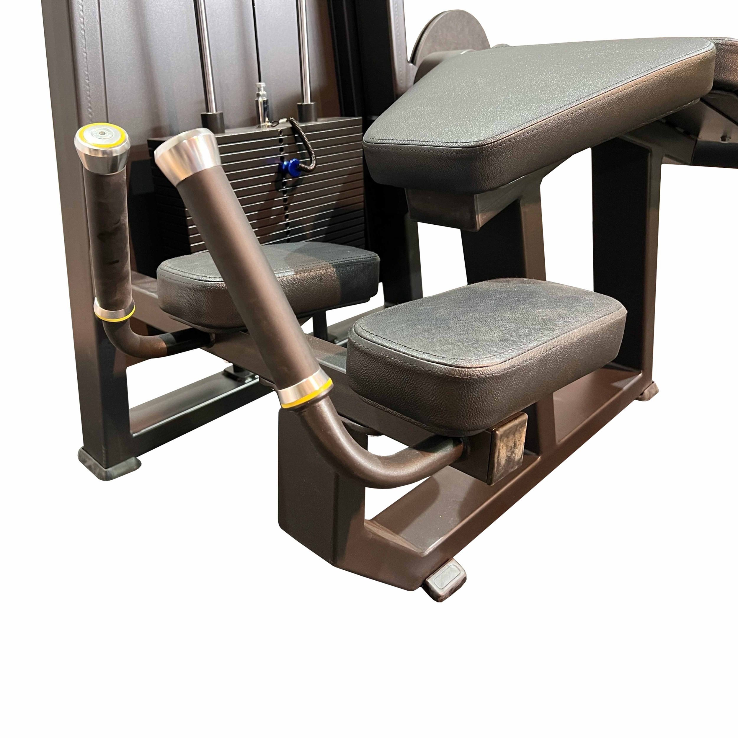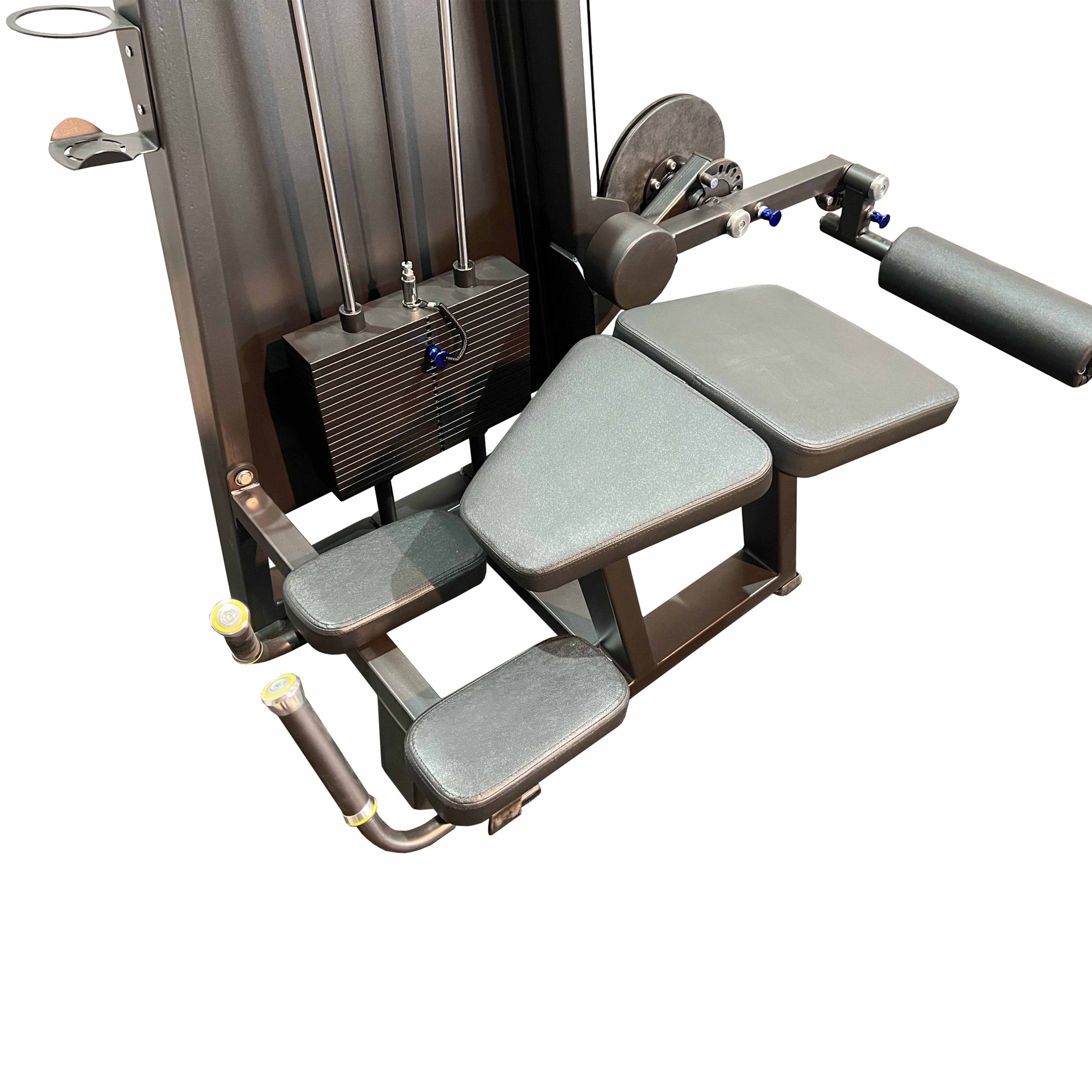 Система нагрузки – тросовая, с весовым стеком 100 кг. Весовой стек выполнен из стальных плит с порошковым покрытием.