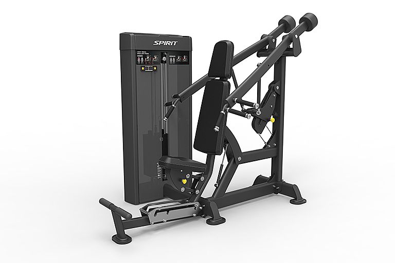 SP-4601 предназначен для выполнения жима перед грудью под различными углами, а также жима над головой. Позволяет эффективно тренировать грудные мышцы и мышцы плеч. Сидение имеет многошаговую регулировку горизонтального положения, а также регулировку спинки.