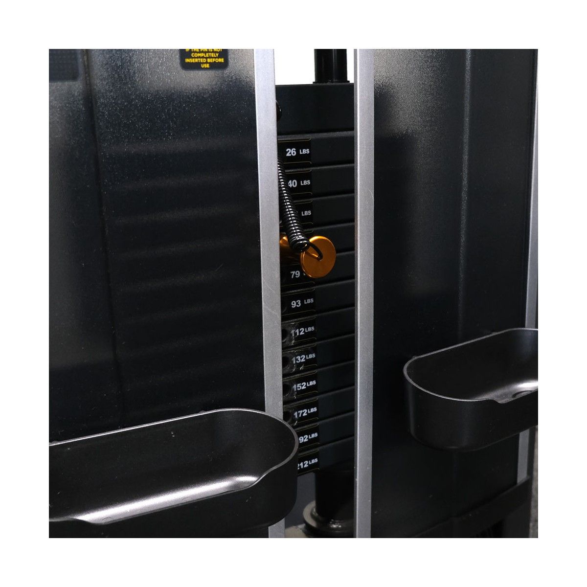 Фронтальное расположение весового стека позволяет быстро отрегулировать уровень нагрузки и обеспечивает приватность тренировки.