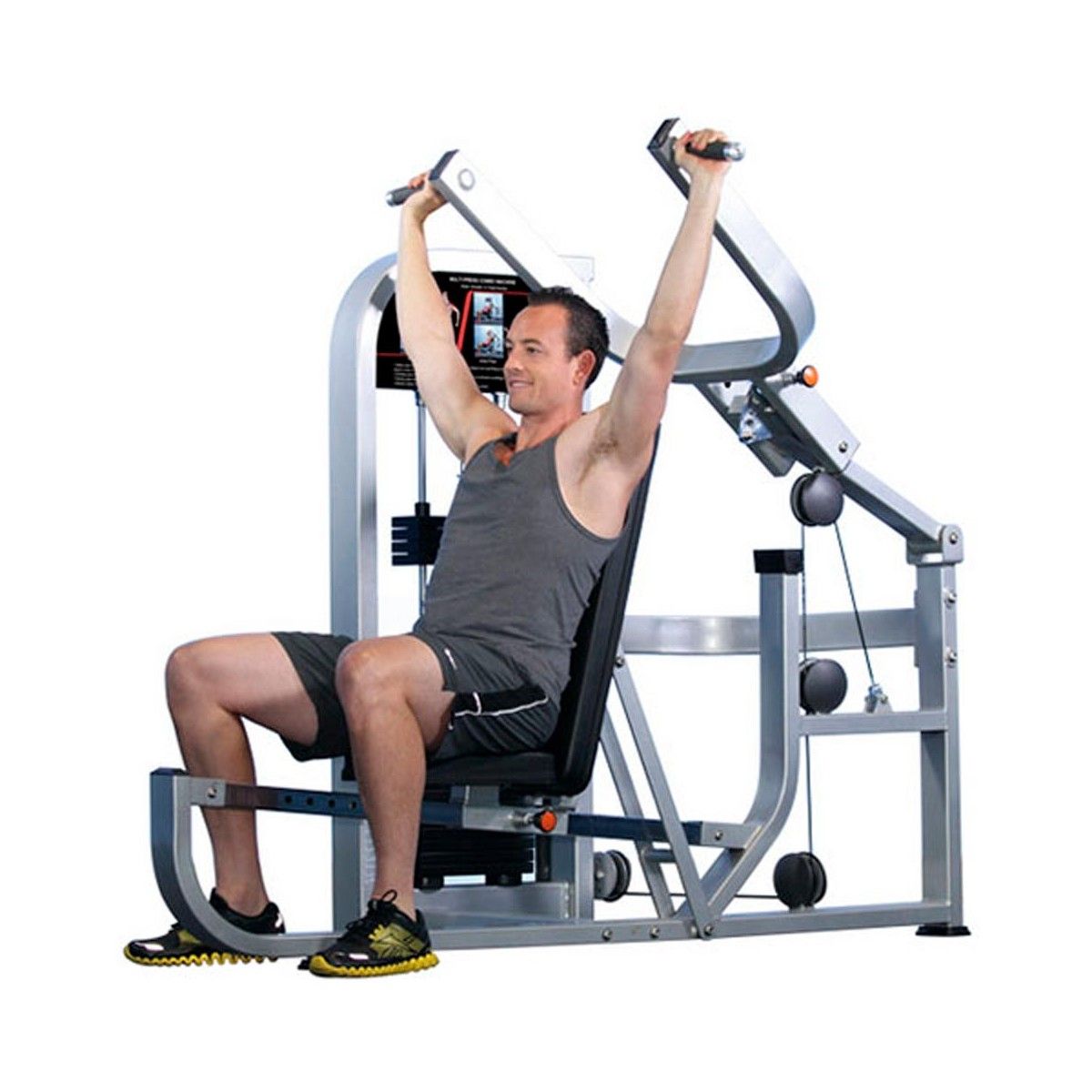 Под каждый стек установлены прочные резиновые бамперы. каждая плита имеет втулки с низким коэффициентом трения вокруг направляющих стержней: это помогает минимизировать износ, вибрацию и шум. Весовые стеки частично закрыты спереди, чтобы обеспечить легкий доступ для обслуживания и смазки. Для безопасности все весовые стеки полностью закрыты с обратной стороны.