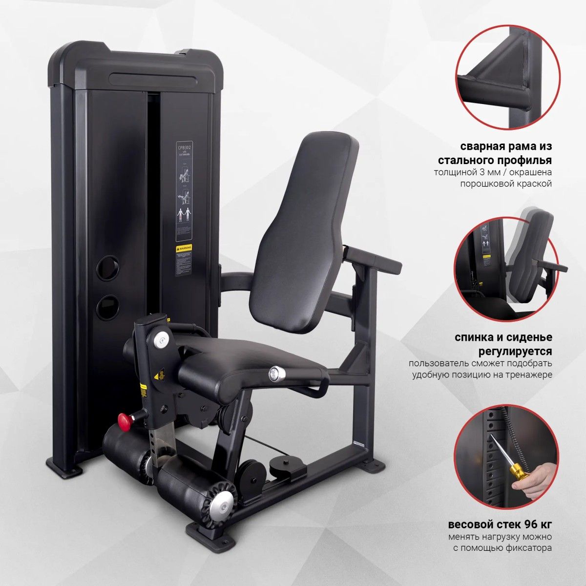 Тренажер «Разгибание ног» из профессиональной линейки Protrain предназначен для тренировки четырехглавой мышцы бедра - квадрицепса. Тренажер прост в обращении, имеет плавный ход и отличную биомеханику, благодаря чему на нем могут заниматься как профессионалы, так и начинающие спортсмены.