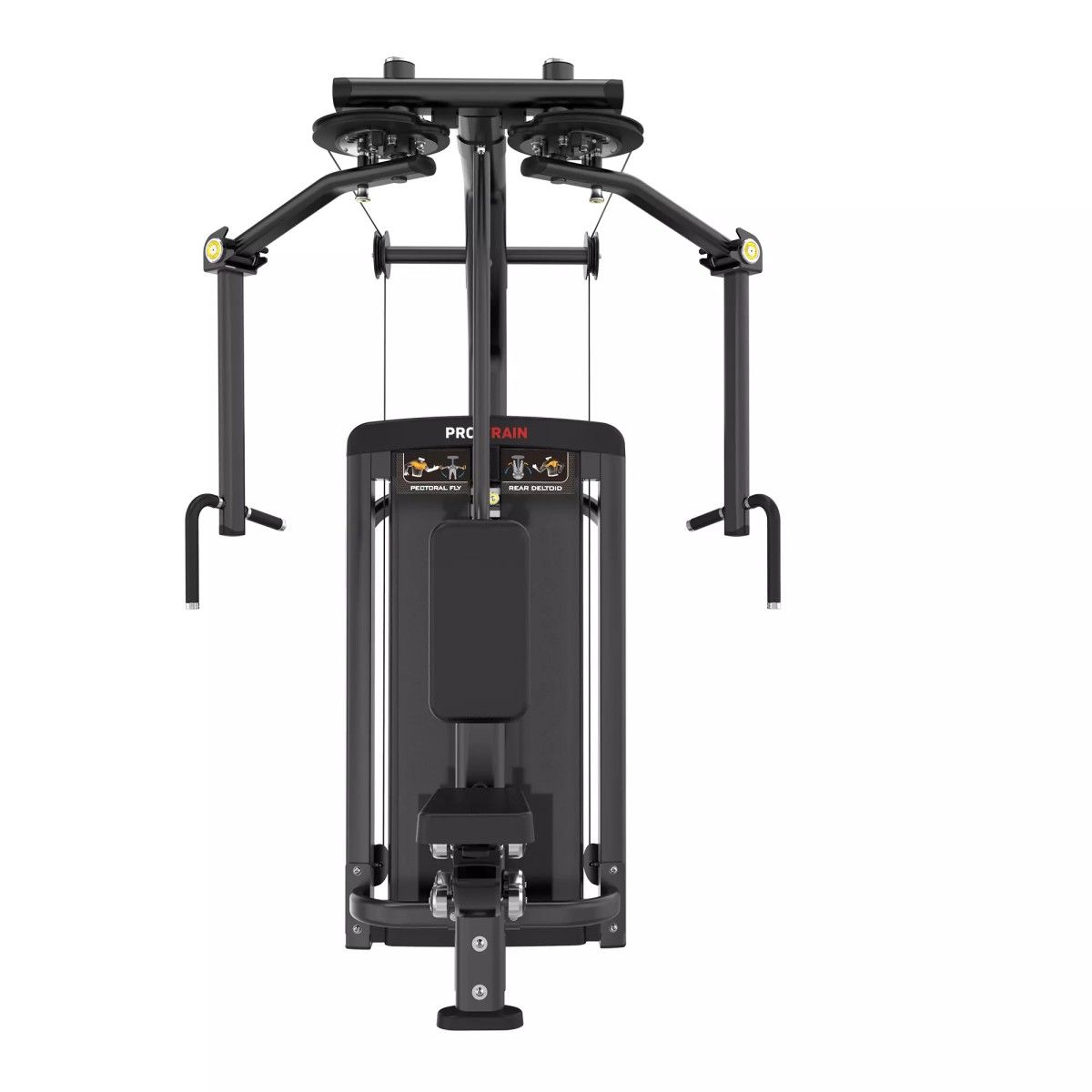 Табличка на корпусе тренажера с указанием тренируемых мышц и техники выполнения упражнения.