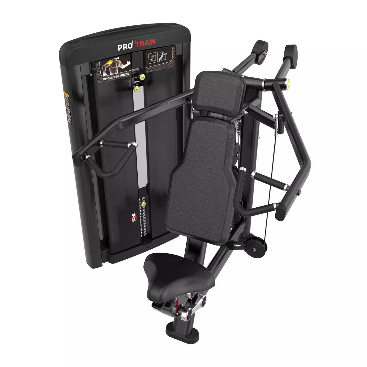 Табличка на корпусе тренажера с указанием тренируемых мышц и техники выполнения упражнения.