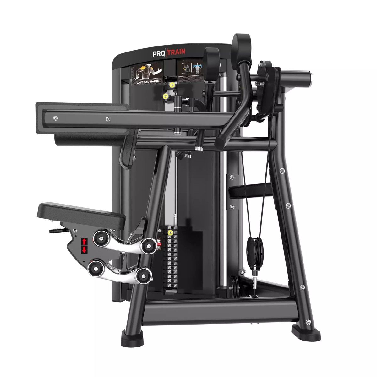 Табличка на корпусе тренажера с указанием тренируемых мышц и техники выполнения упражнения.