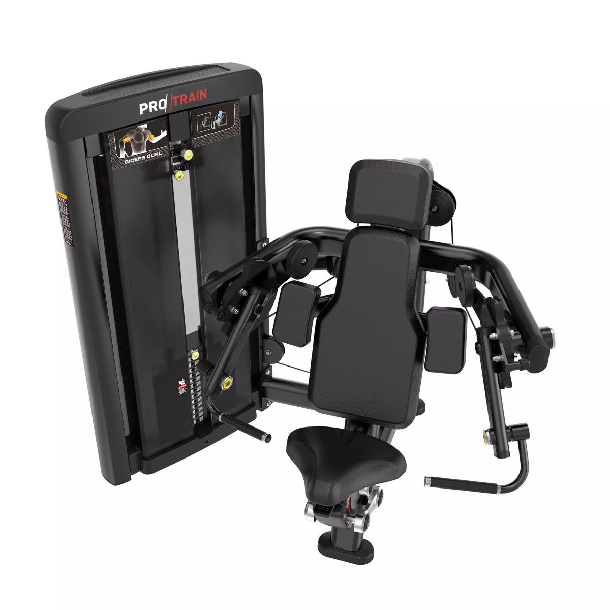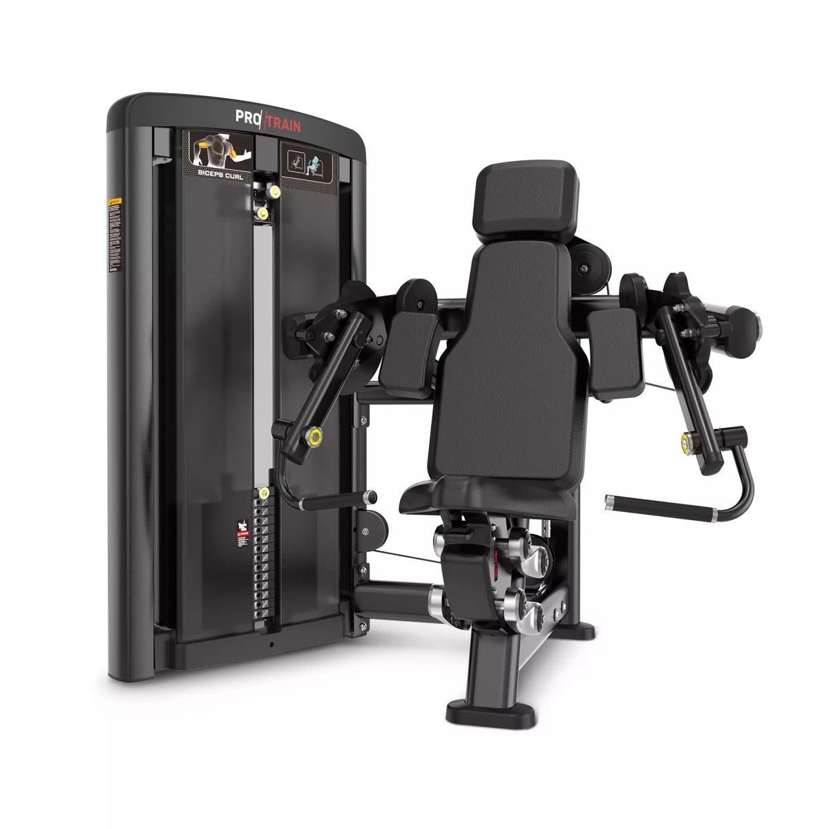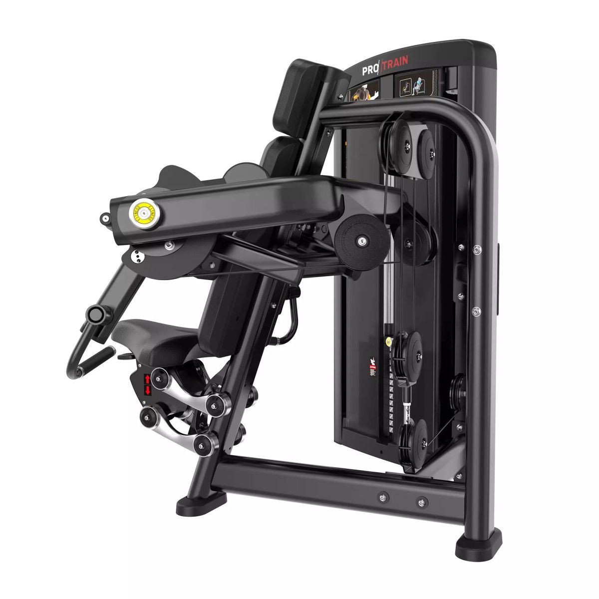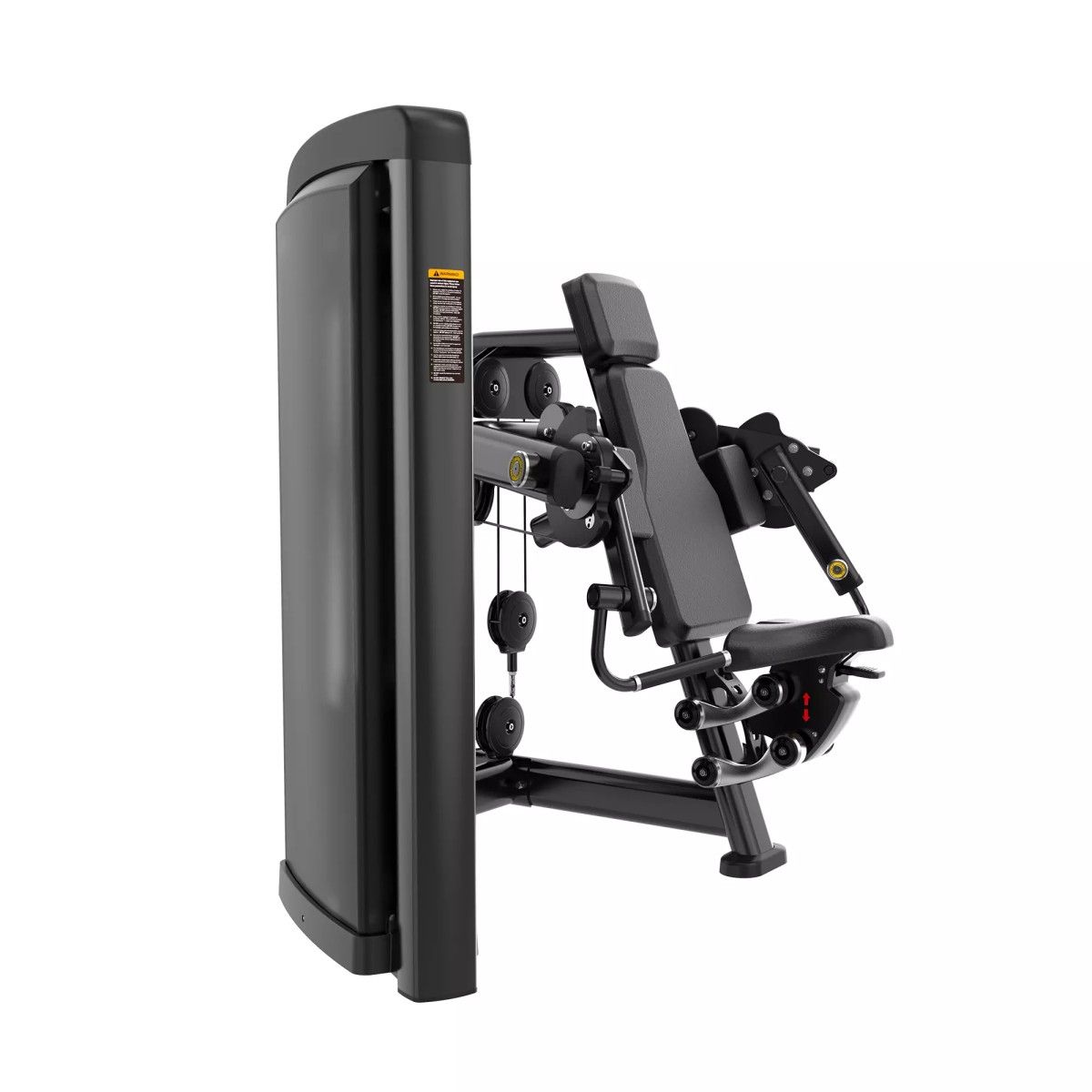 Табличка на корпусе тренажера с указанием тренируемых мышц и техники выполнения упражнения.