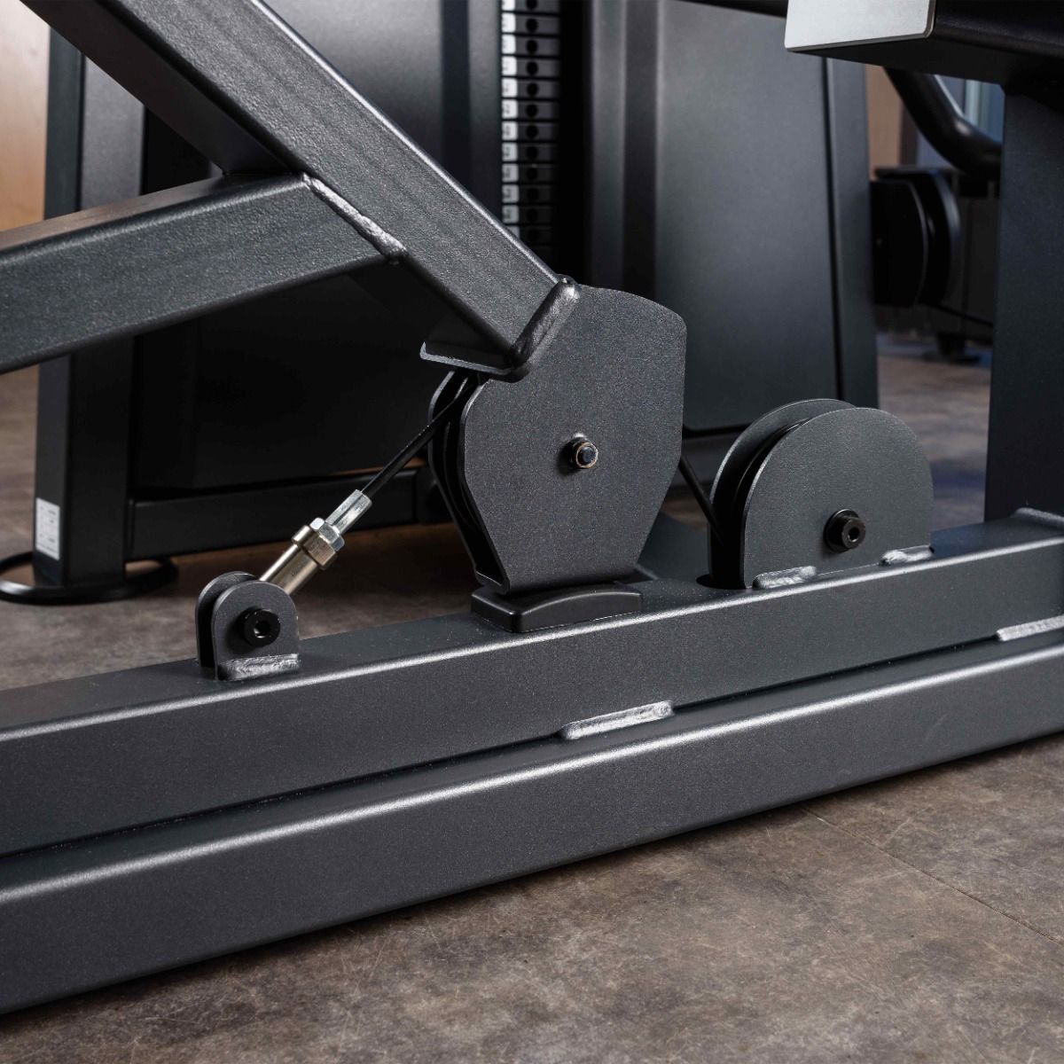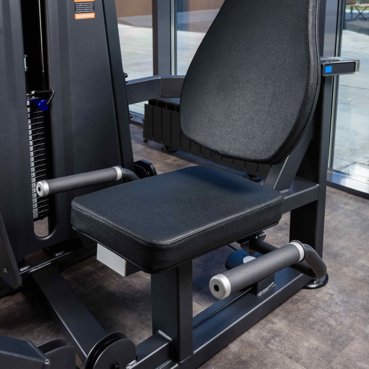 Металлическая защита весового стека с обеих сторон, с отверстием с завальцованными внутрь гранями для безопасного выбора нагрузки.