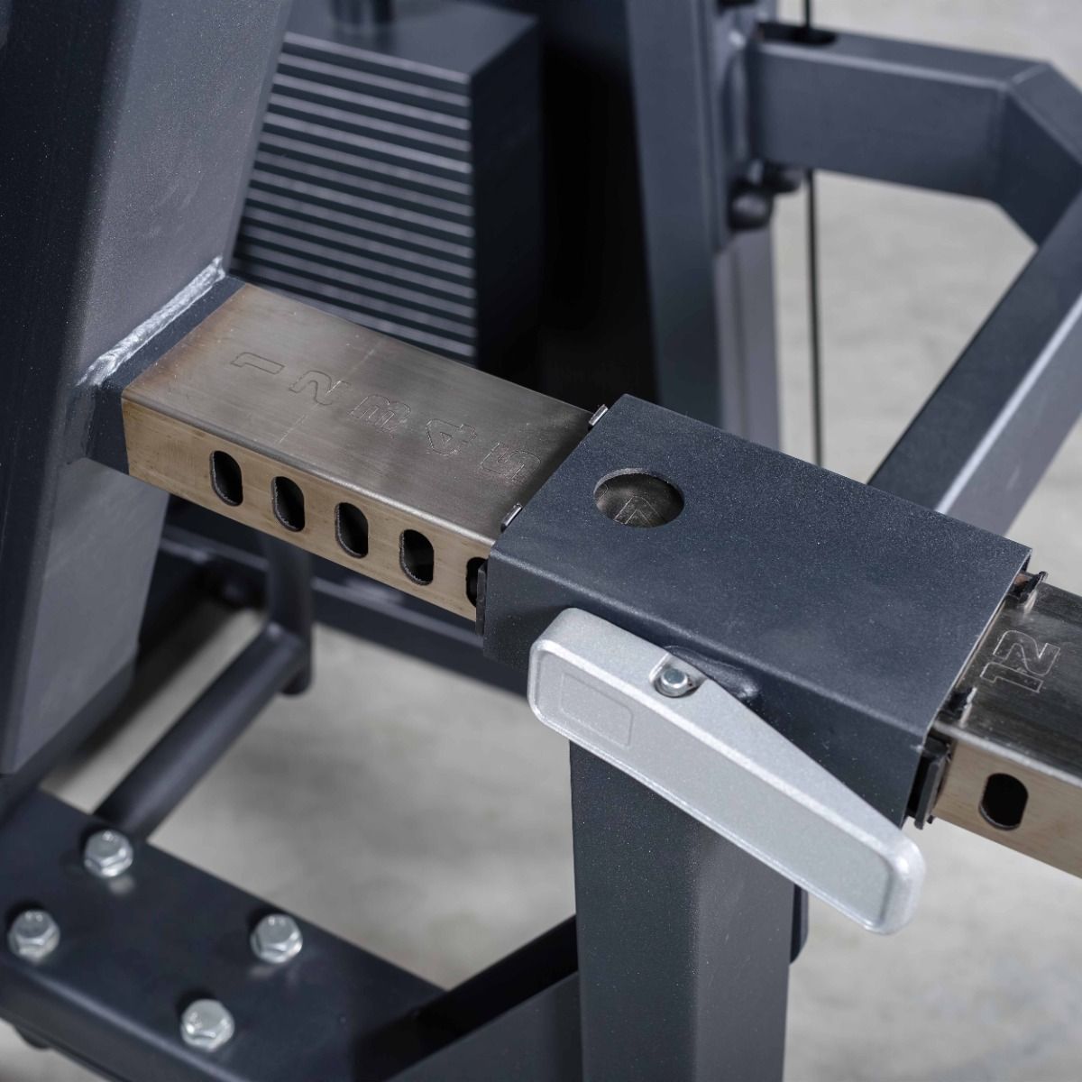 Система нагрузки – тросовая, с весовым стеком 100 кг. Весовой стек выполнен из стальных плит с порошковым покрытием.