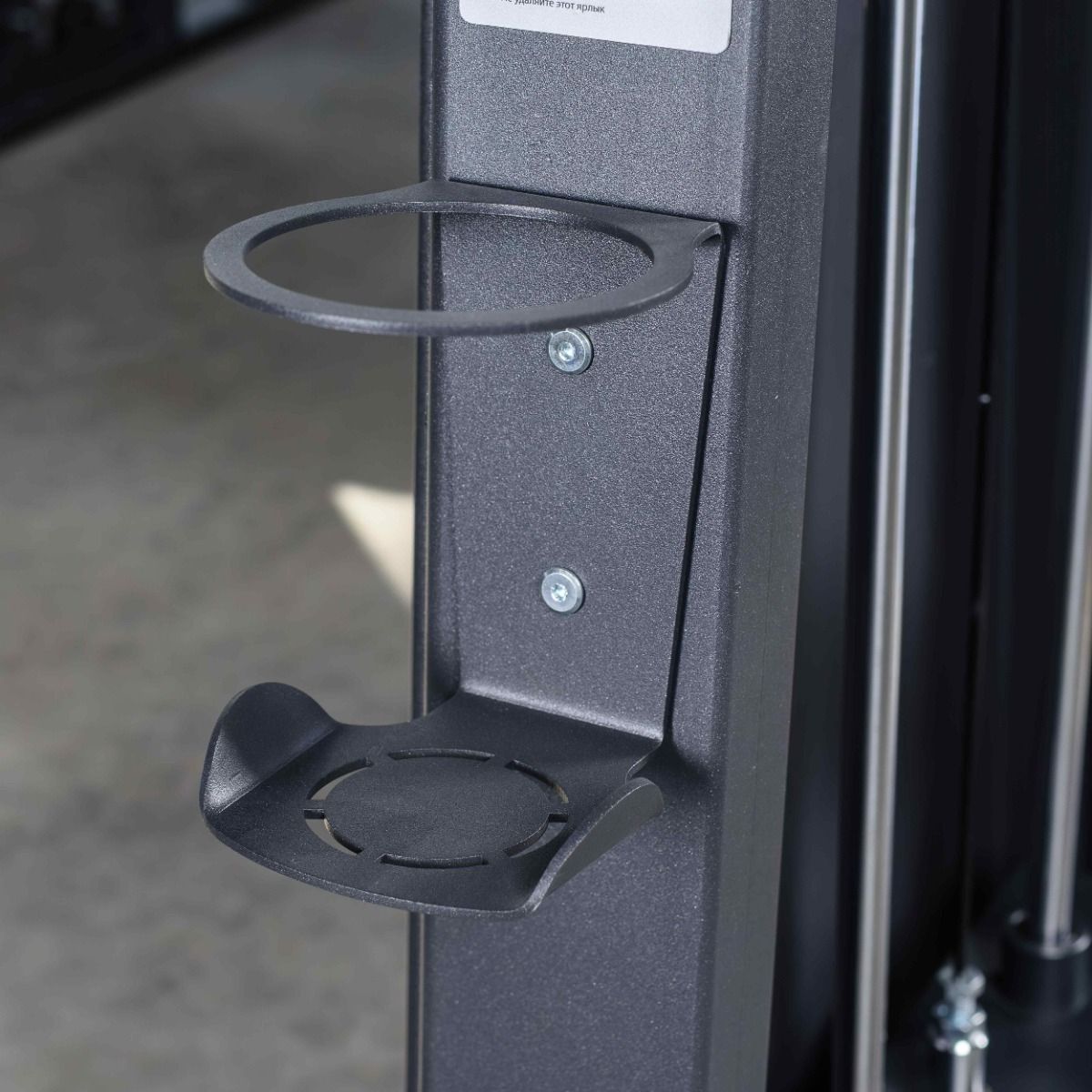 На раме тренажера закреплён металлический держатель для бутылки или личных вещей.