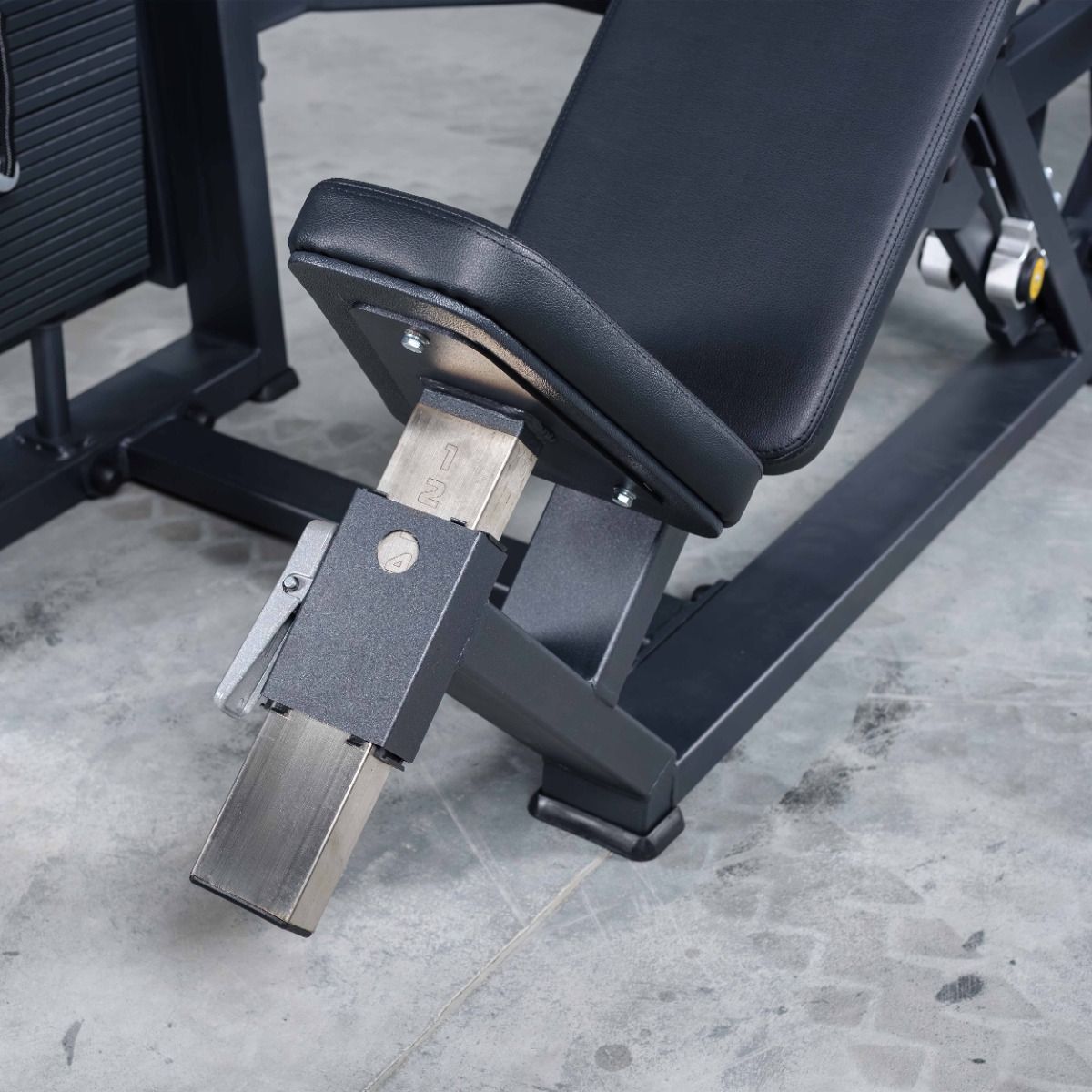 Подушки сиденья и спинки имеют оптимальную плотность наполнителя из вспененного полиуретана, обеспечивая комфорт и стабильную поддержку во время выполнения упражнения. Обивка выполнена из износостойкой искусственной кожи чёрного цвета. Цвет обивки может быть изменён под заказ.