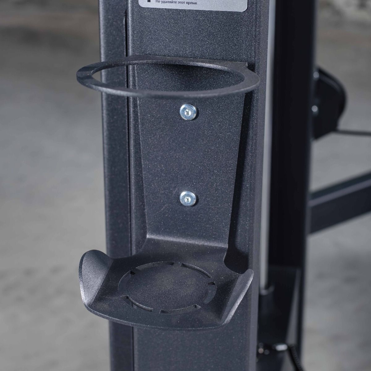 На раме тренажёра предусмотрен металлический держатель для бутылки или личных вещей.