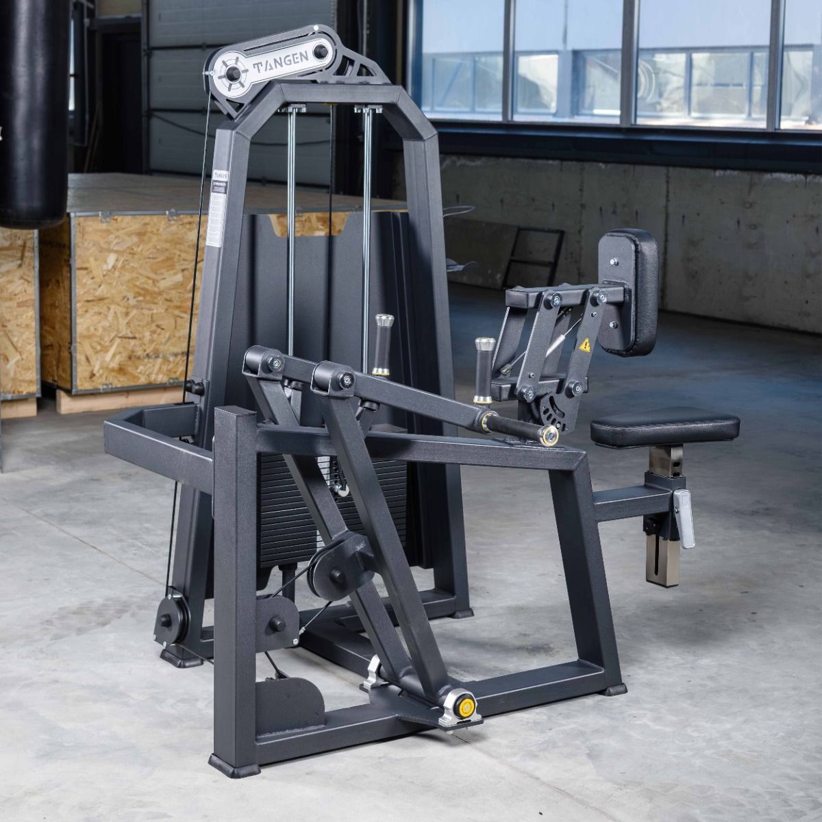 Система нагрузки – тросовая, с весовым стеком 100 кг. Весовой стек выполнен из стальных плит с порошковым покрытием.
