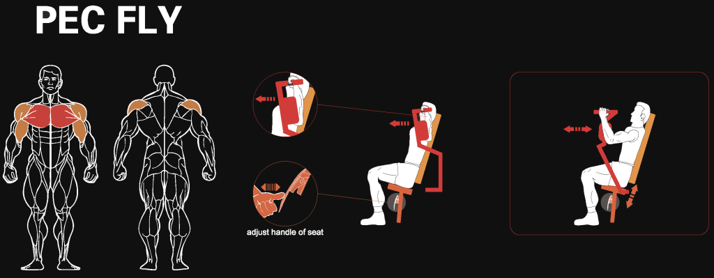 - Два упражнения в одном: Сведение рук (грудь) и разведение рук (задняя дельта).