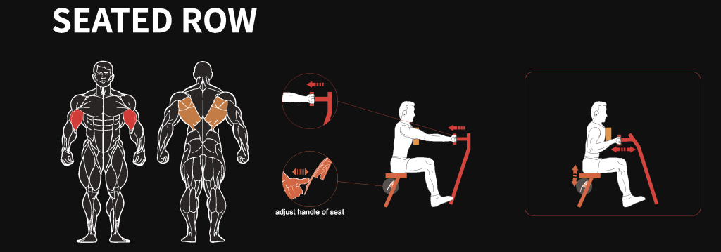 - Гребная тяга с упором в грудь: Акцент на широчайшие мышцы спины.