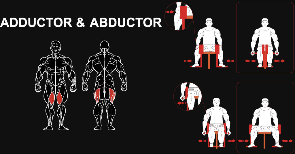 Тренажер оснащен мягкими валиками для фиксации ног (с внутренней стороны бедер для сведения и с внешней стороны для разведения) и удобными рукоятями для стабилизации корпуса.